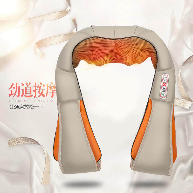 跨境电动揉捏按摩披肩斜方肌家用热敷颈肩腰按摩器颈椎按摩带充电