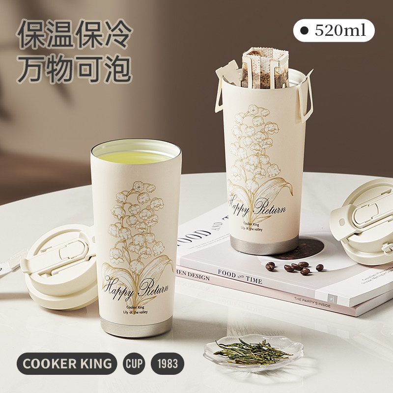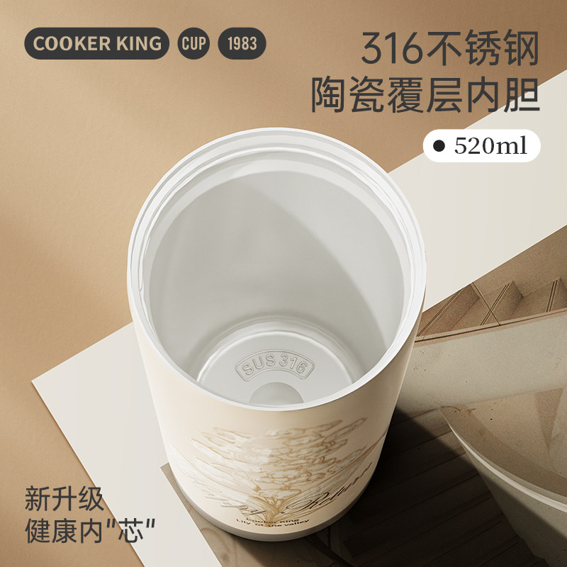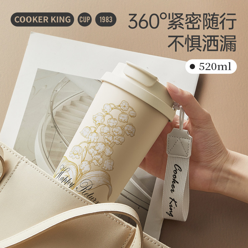 炊大皇咖啡杯保温316不锈钢高颜值轻奢便携女生吸管水杯子