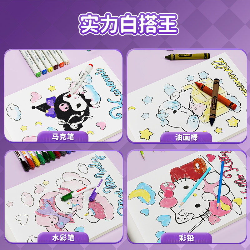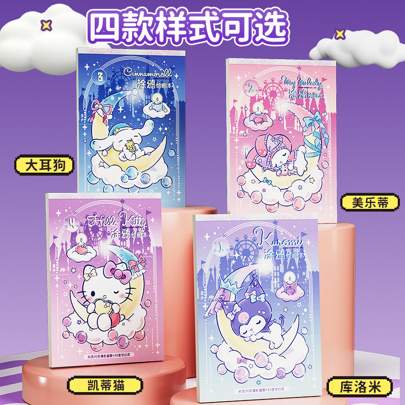 三丽鸥库洛米周边涂色填色图画本美乐蒂涂鸦本子卡通贴纸玩具书凯蒂猫生日礼物美术宝宝儿童幼儿园小学生专用