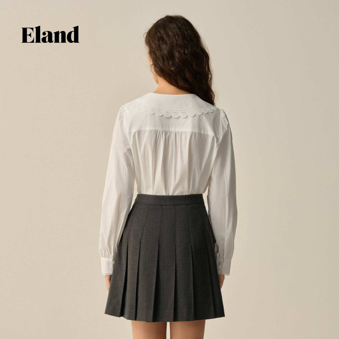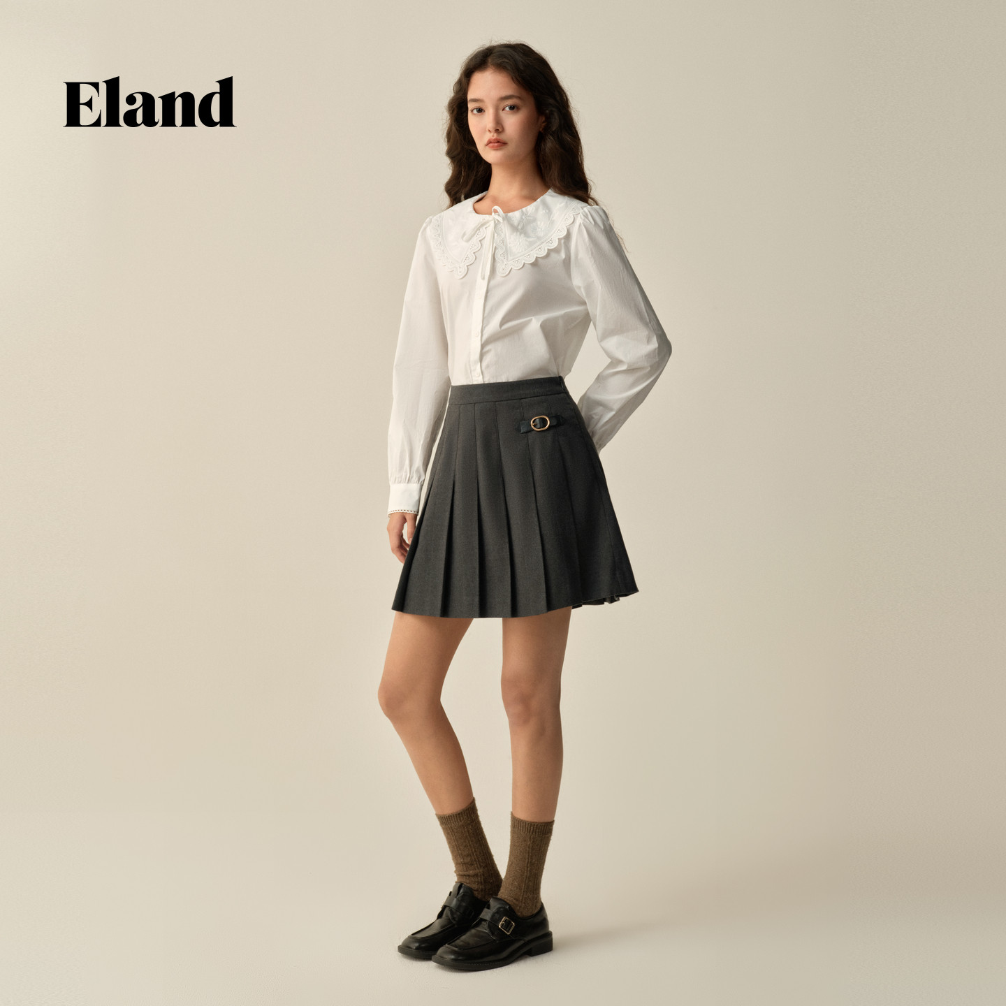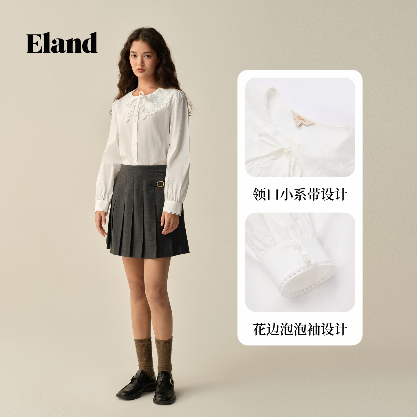 【100%棉】Eland衣恋衬衫女气质荷叶领长袖上衣2025冬季新款