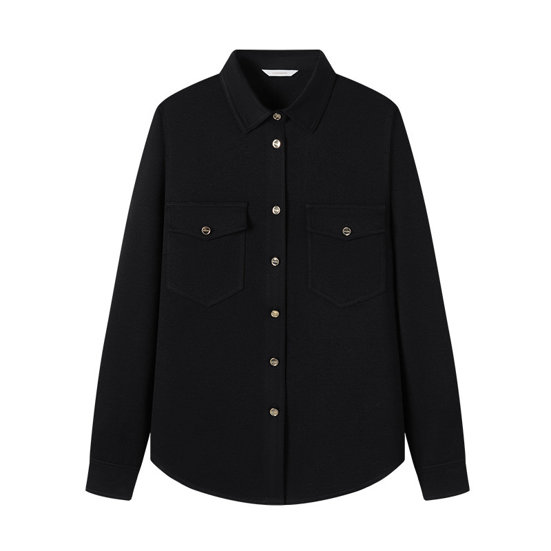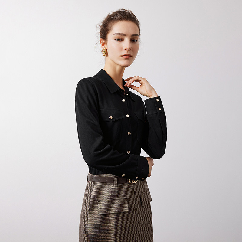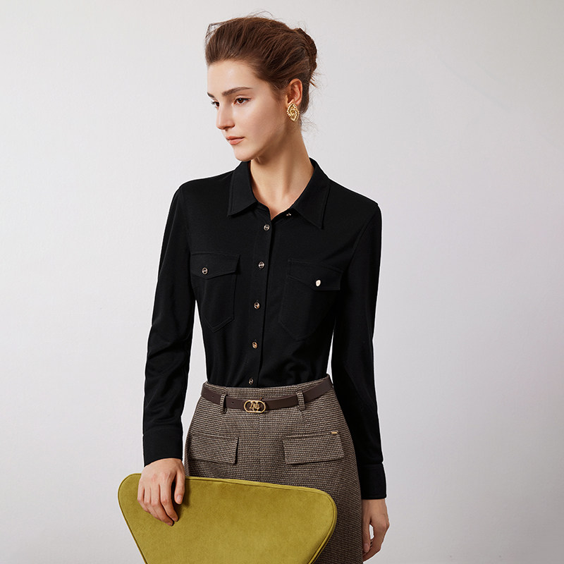 Navigare意大利小帆船黑色长袖衬衫女春季新款设计感商务休闲衬衣