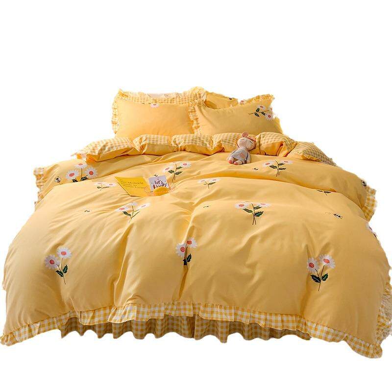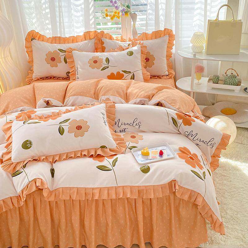 床裙款加厚磨毛四件套1.5米1.8m公主风植物羊绒斜纹被套双人床单