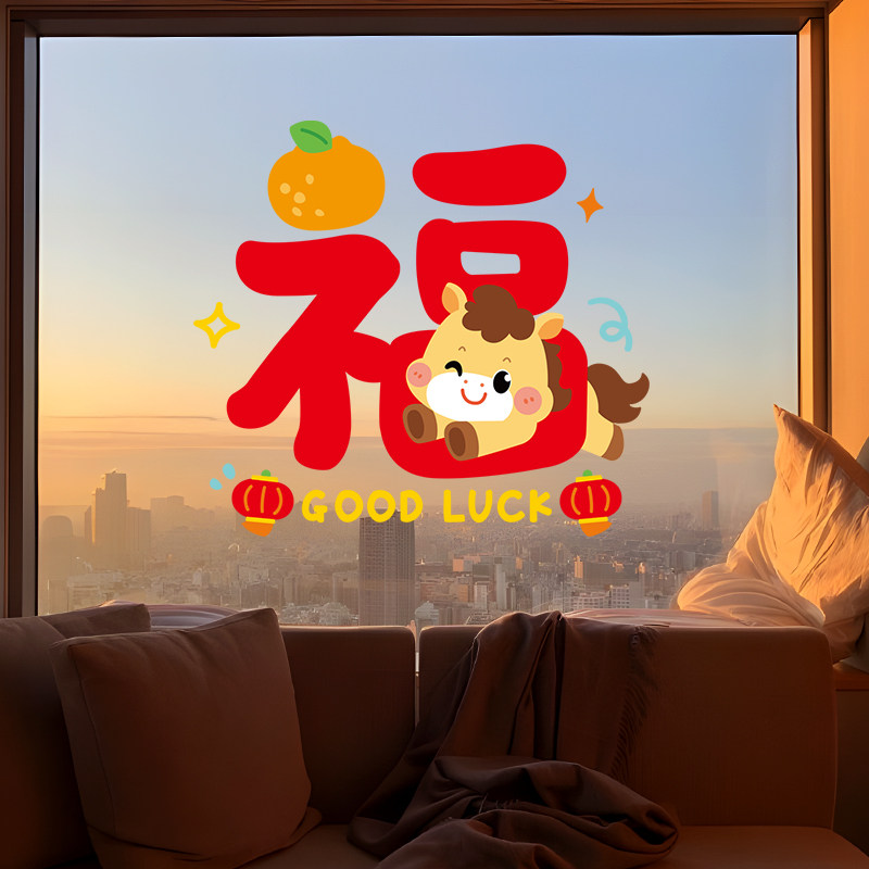 2026马年新款窗花春节静电玻璃门贴纸过年装饰布置新年福字橱窗贴