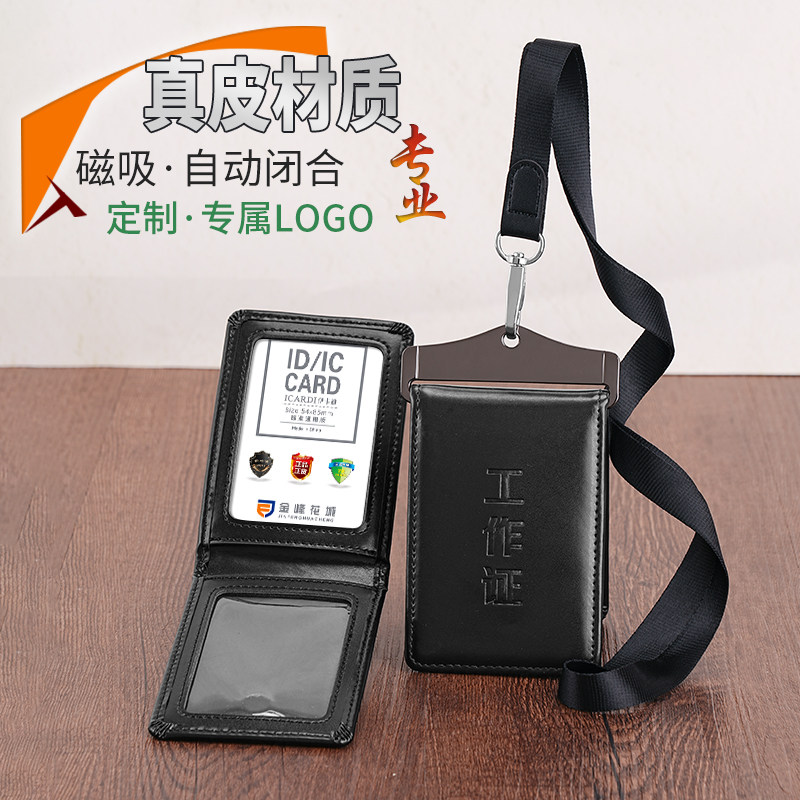 吸磁式工作证卡套工牌卡托挂绳定制真皮证件卡套吊绳胸牌工作牌挂脖公司证件卡套绳子保护套上岗证卡包