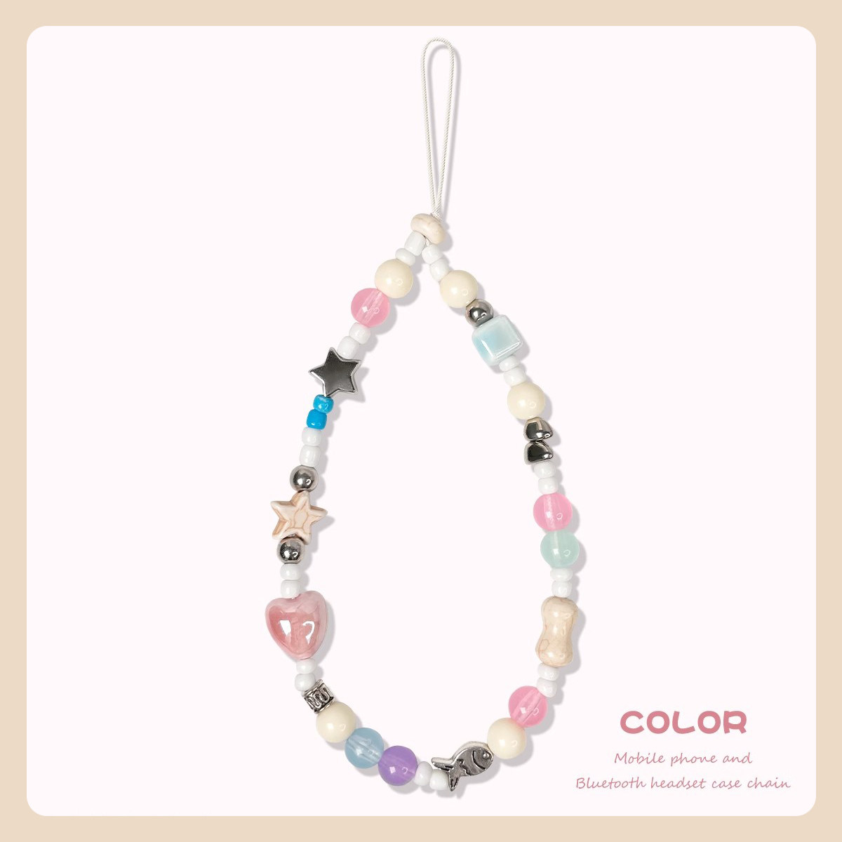 透蓝星星串珠手链条ins时尚轻奢手机链挂件饰品ccd相机链手机壳挂链耳机套挂饰包包挂绳便携手绳日韩网红女