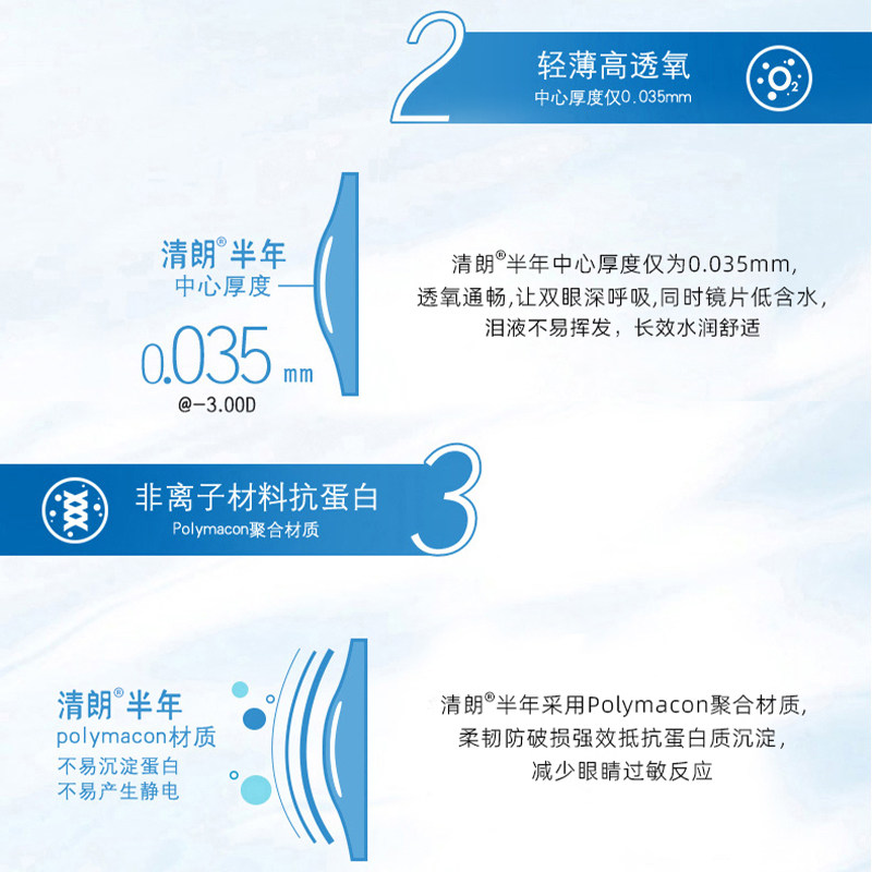 清朗隐形近视眼镜半年抛透明水凝胶轻薄舒适非日抛正品官方旗舰店