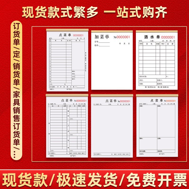点菜单一联饭店烧烤店开单本单联早餐记菜单餐饮结账单餐馆菜单本