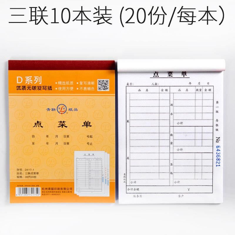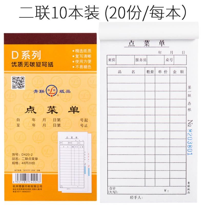 点菜单二联饭店烧烤两联二连菜单本大排档快餐餐饮联点餐单