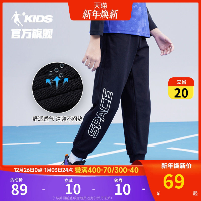 乔丹童装男童裤子秋冬款儿童薄款休闲卫裤大童夏装运动裤纯棉长裤