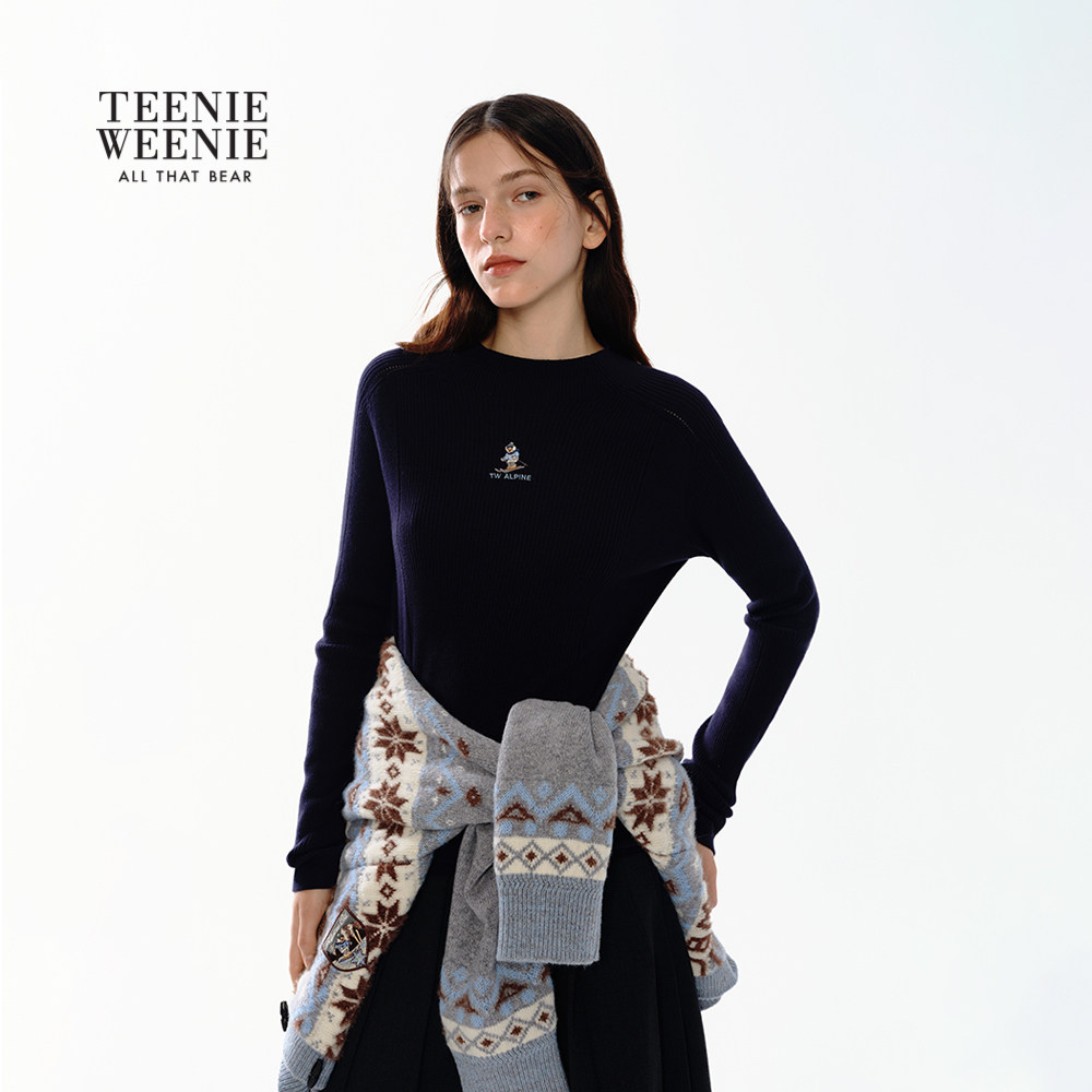 TeenieWeenie小熊女装秋冬时尚简约刺绣半高领毛衣棉针织打底衫