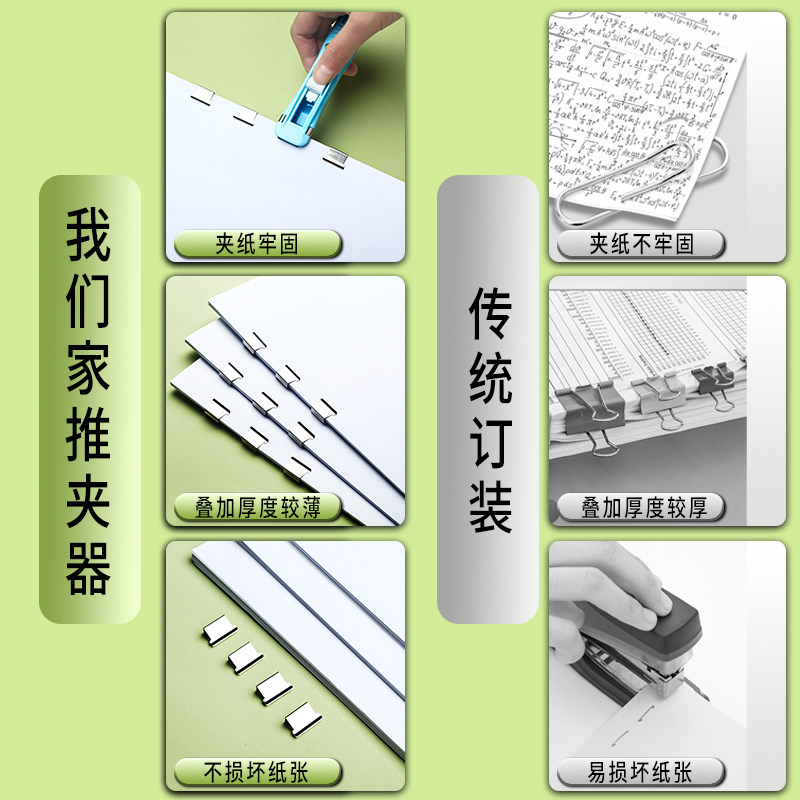 晨光推夹器夹子文具夹子固定器固定试卷神器装订金属钉票据书本纸张办公用品推推夹书助推燕尾透明补充工具