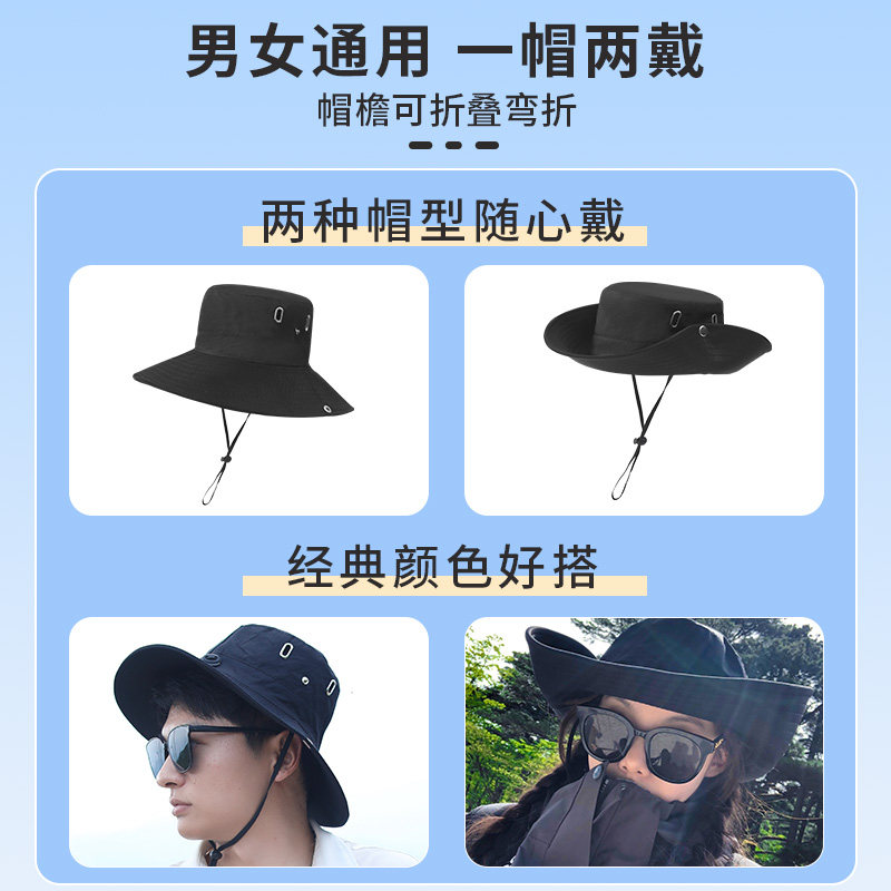 西部牛仔帽男渔夫帽女爬山沙漠防晒帽户外露营遮阳帽子徒步登山帽