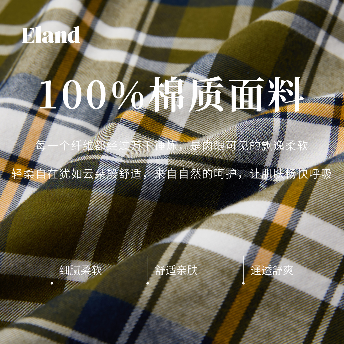【男装上新】Eland衣恋衬衫学院风宽松长袖格纹上衣2025冬季新款