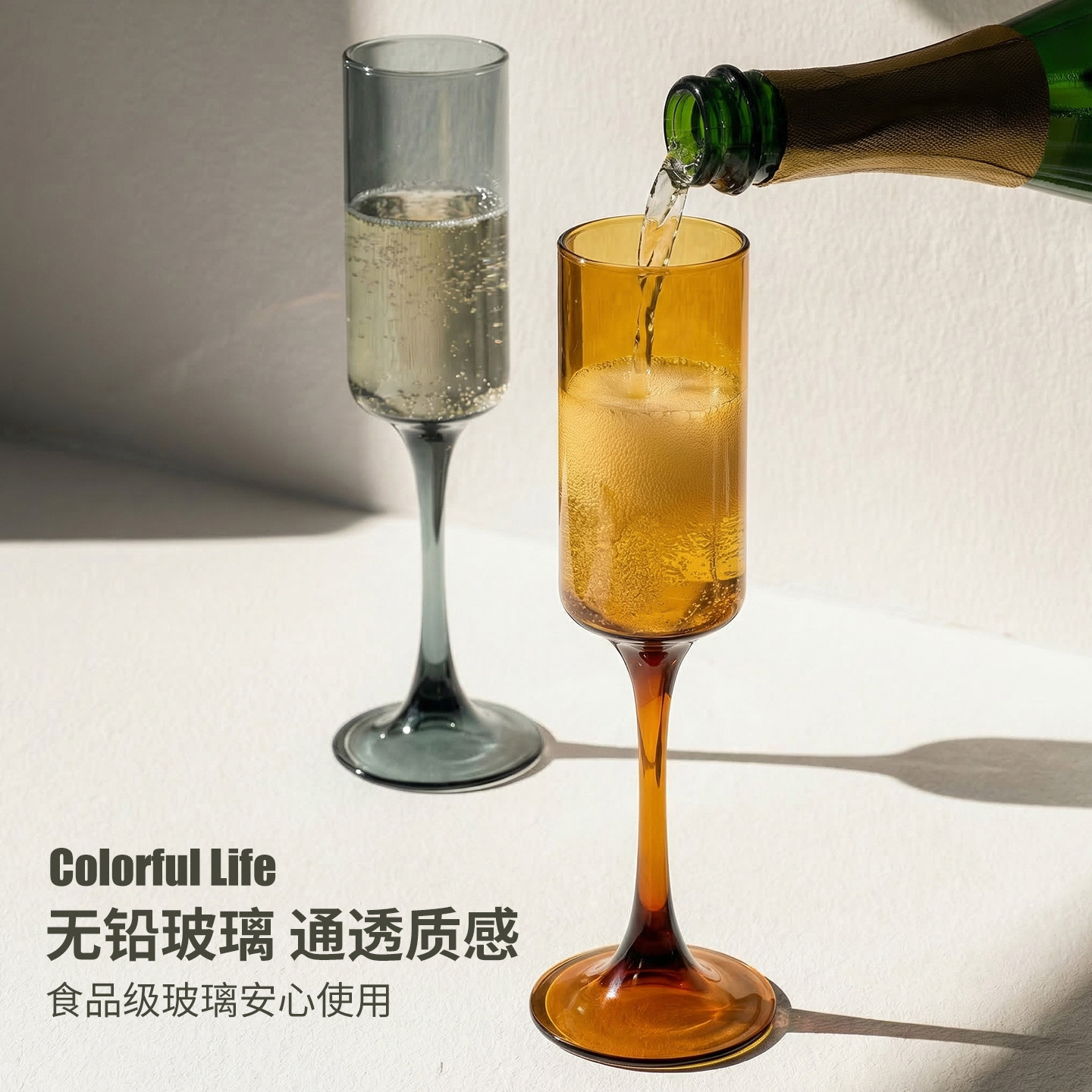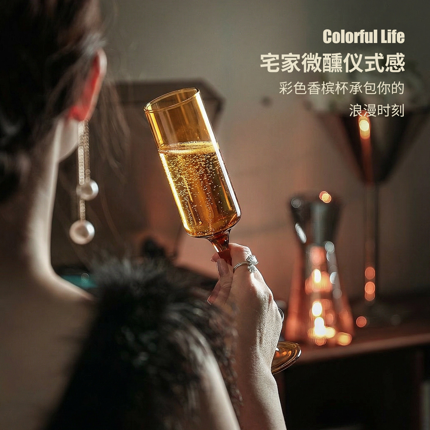 香槟杯高颜值高脚杯鸡尾酒白葡萄酒杯家用水晶杯子郁金香起泡酒杯
