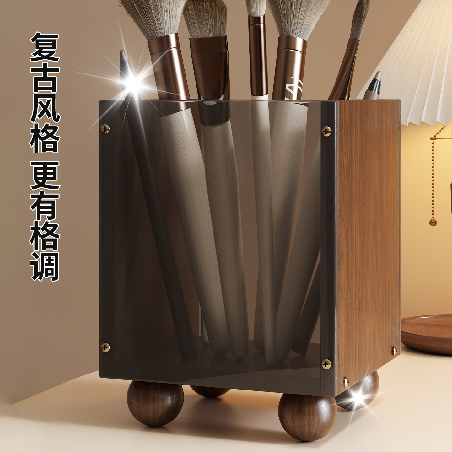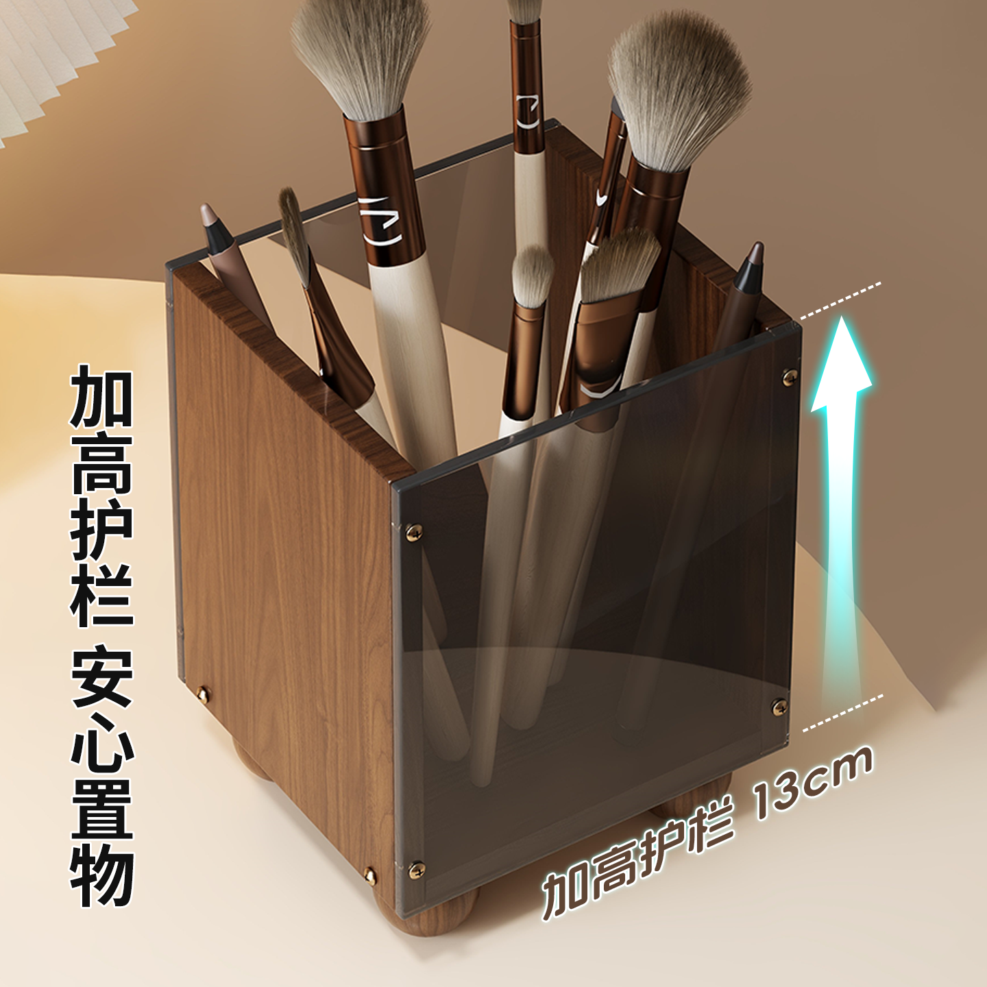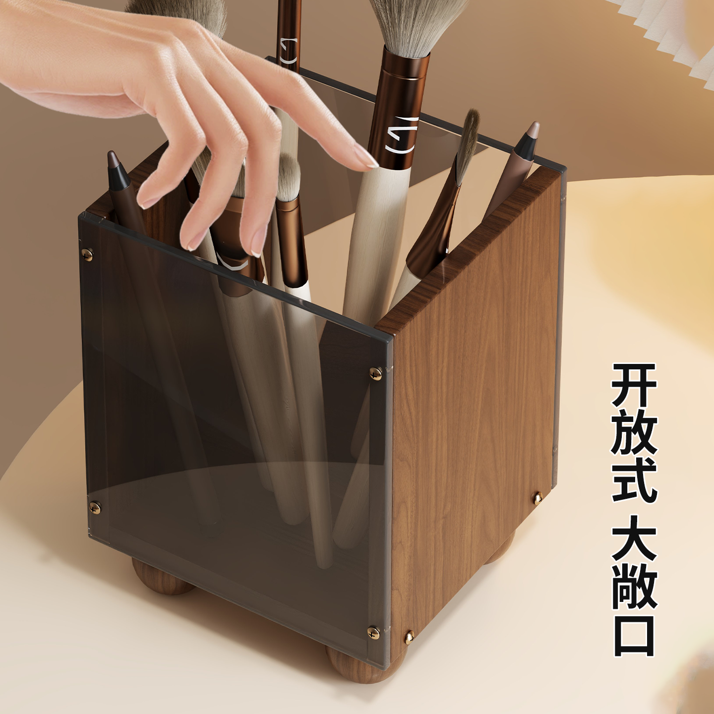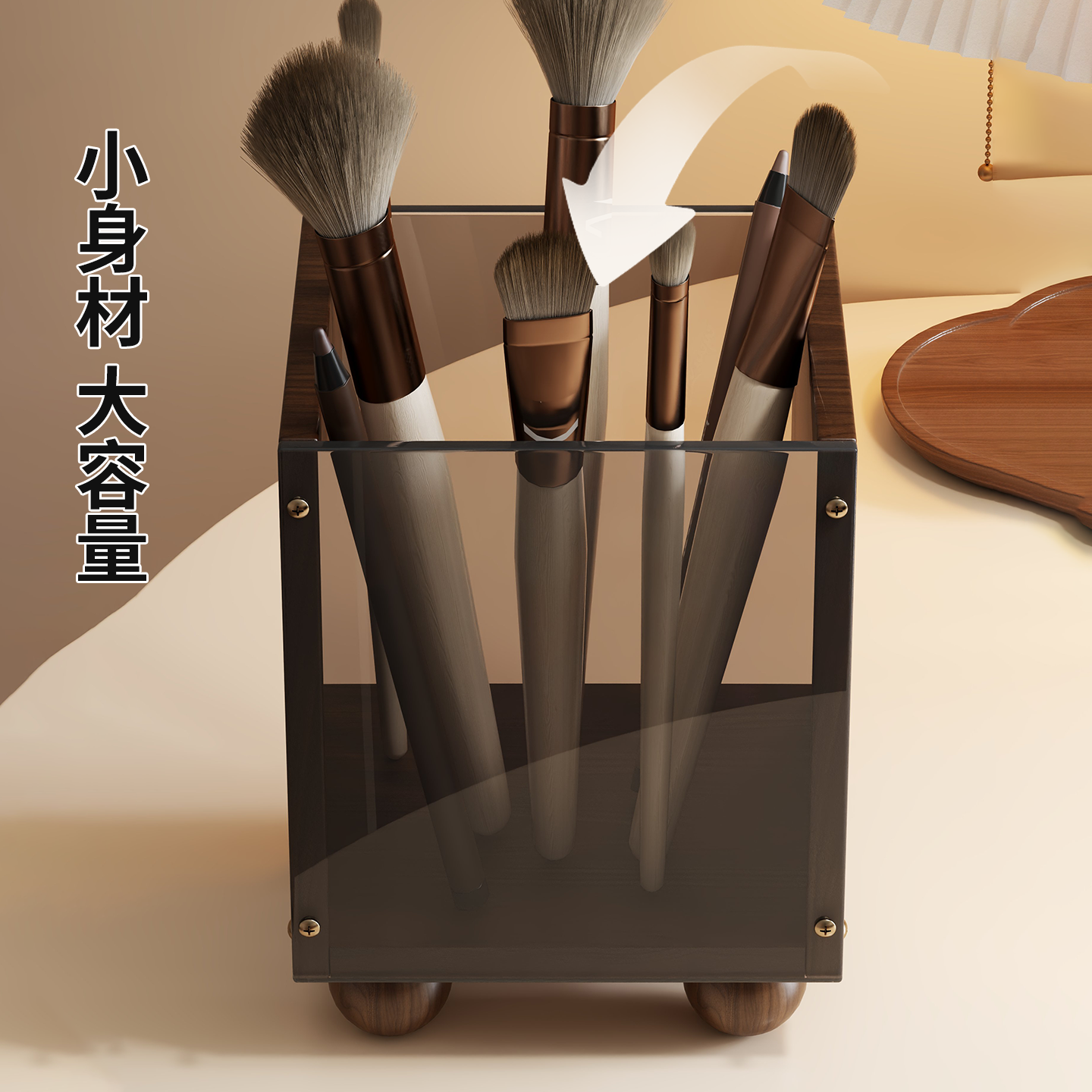 多功能收纳盒化妆刷眉笔收纳筒梳妆台大容量桶洗漱台梳子置物架