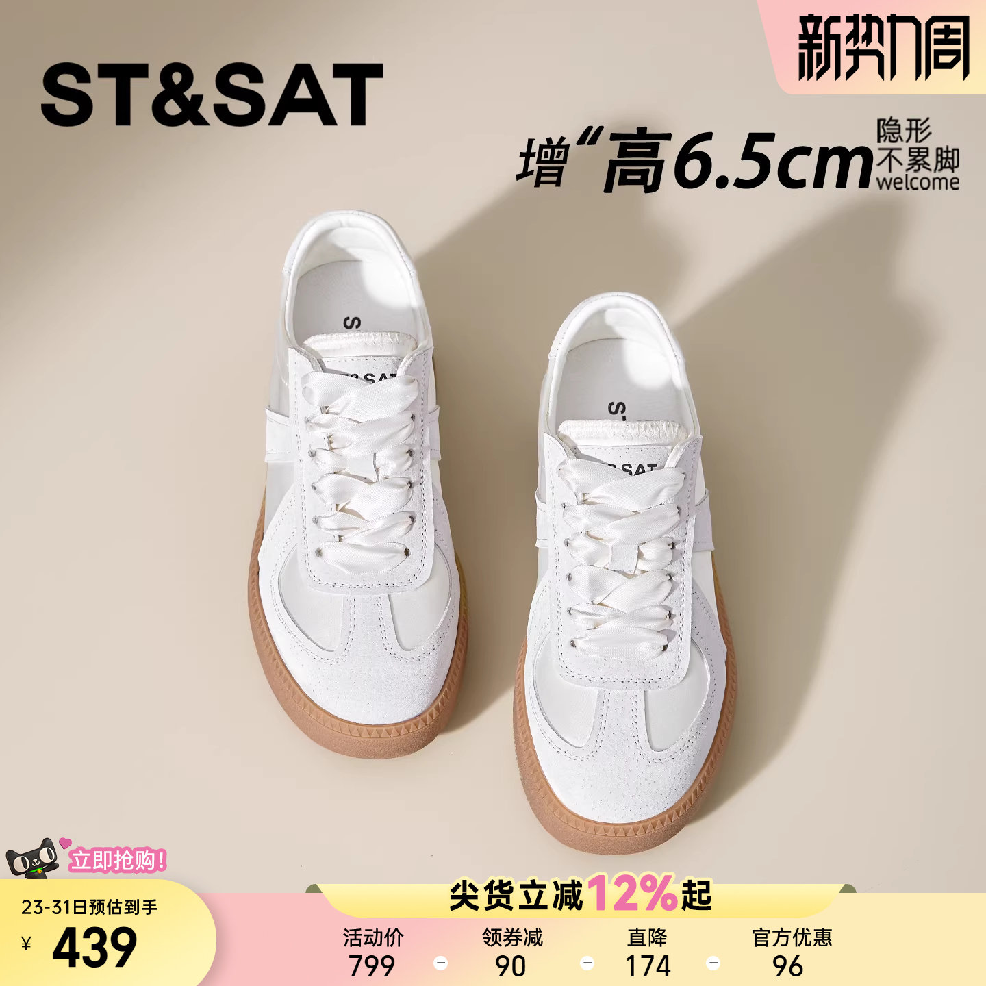 星期六6.5CM内增高板鞋女轻便软底增高小白鞋子百搭厚底德训女鞋