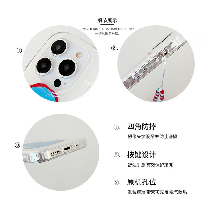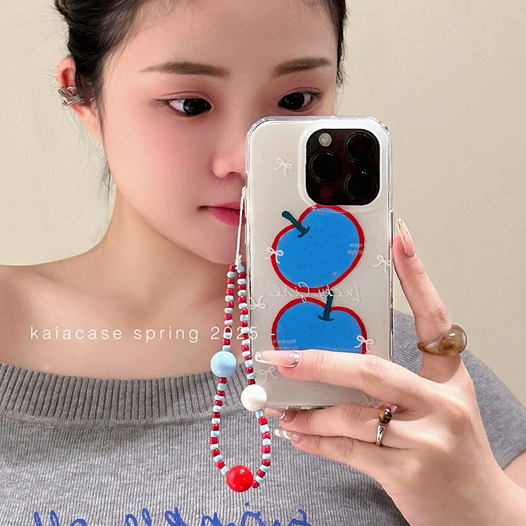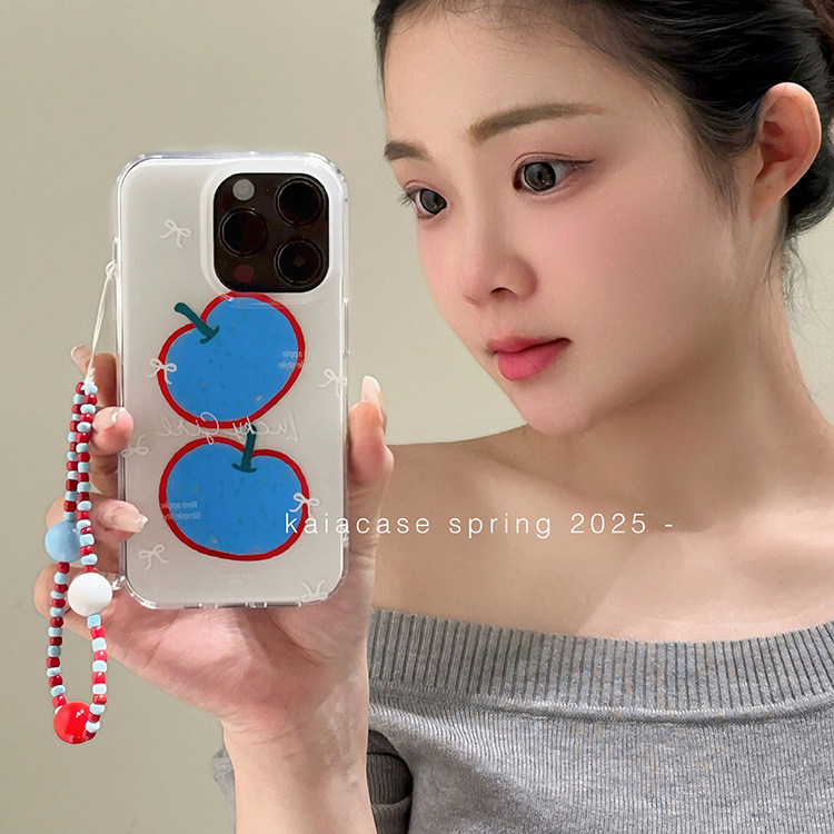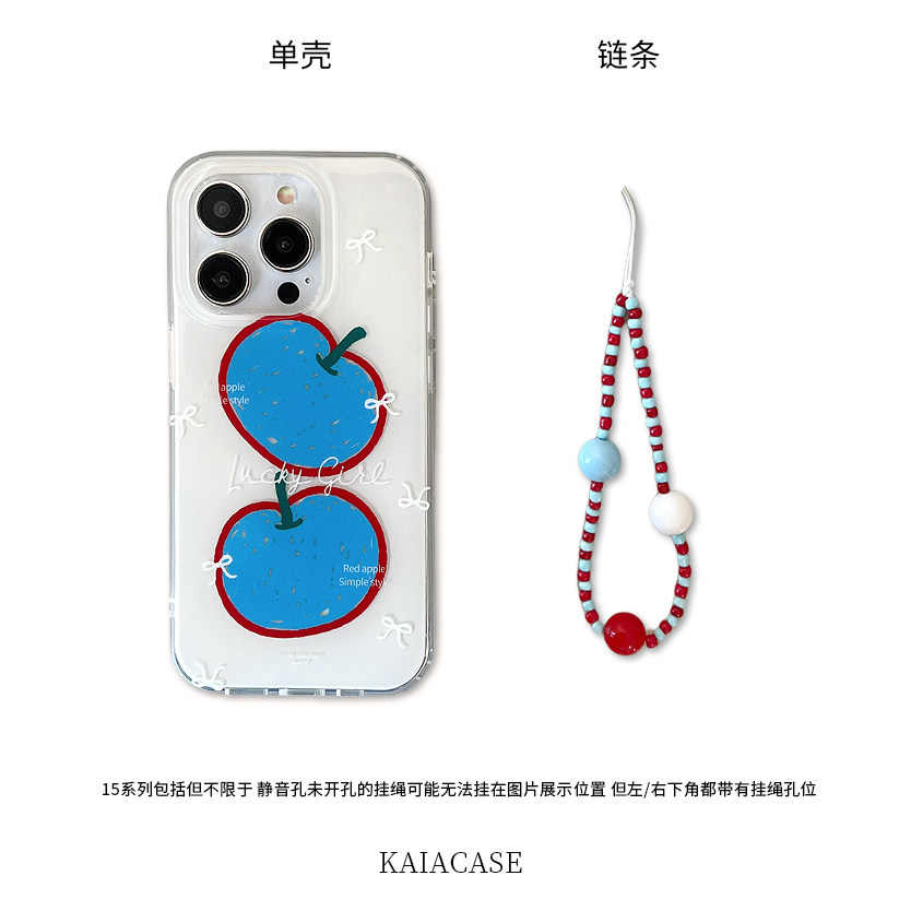 kaia小众艺术涂鸦蓝色苹果插画适用苹果16promax手机壳iphone17pro新款15女14pro带链条17创意双层防摔手机套