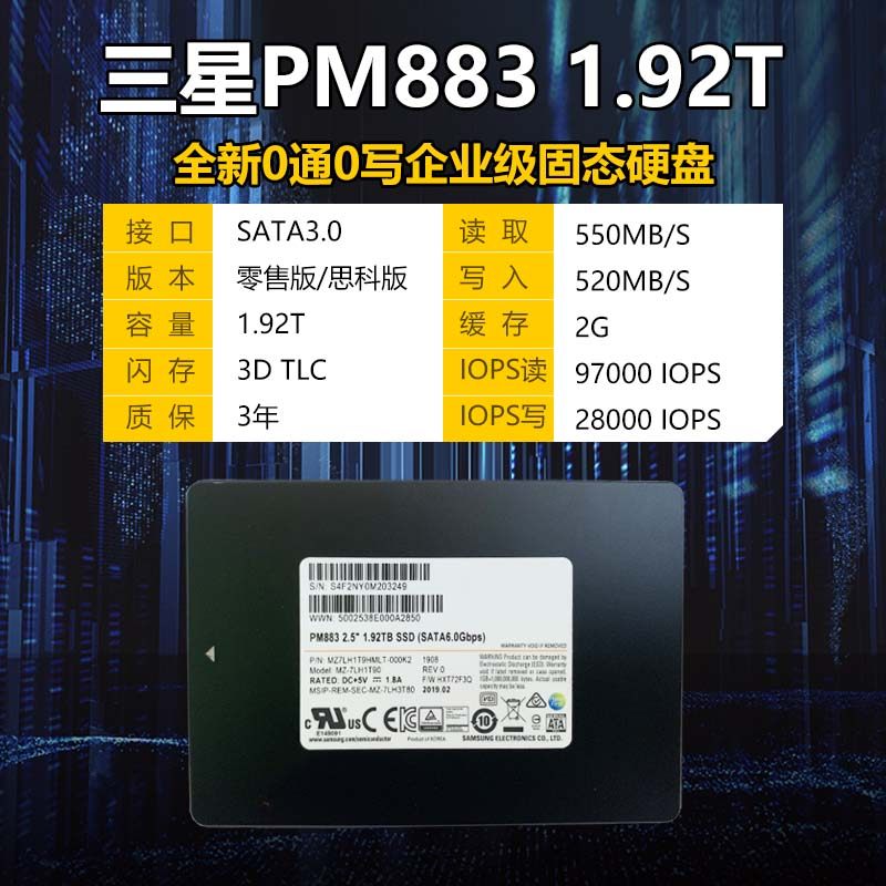 三星PM893 480G960G1.92Tsata3企业级MLC固态硬盘PM883 SM883硬盘