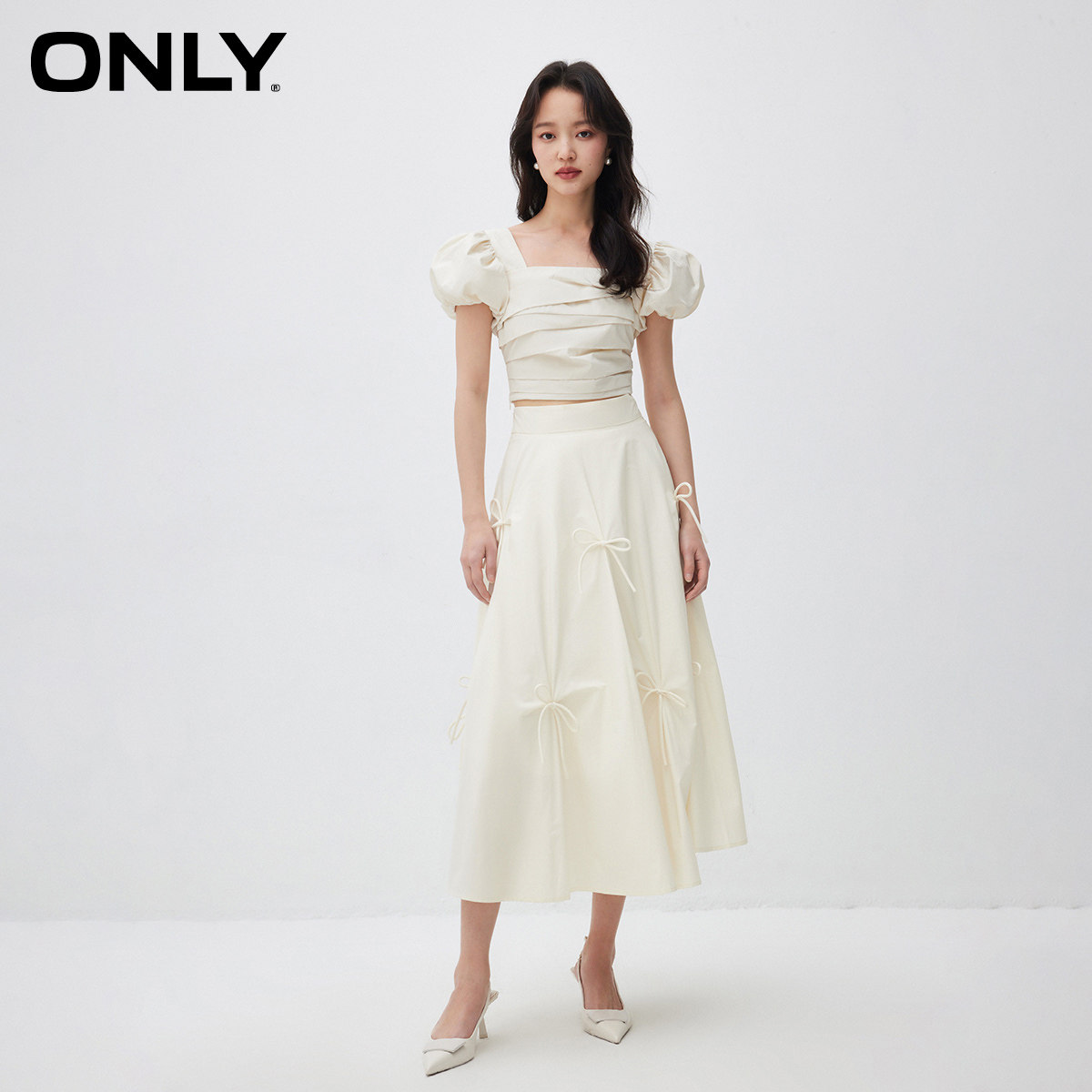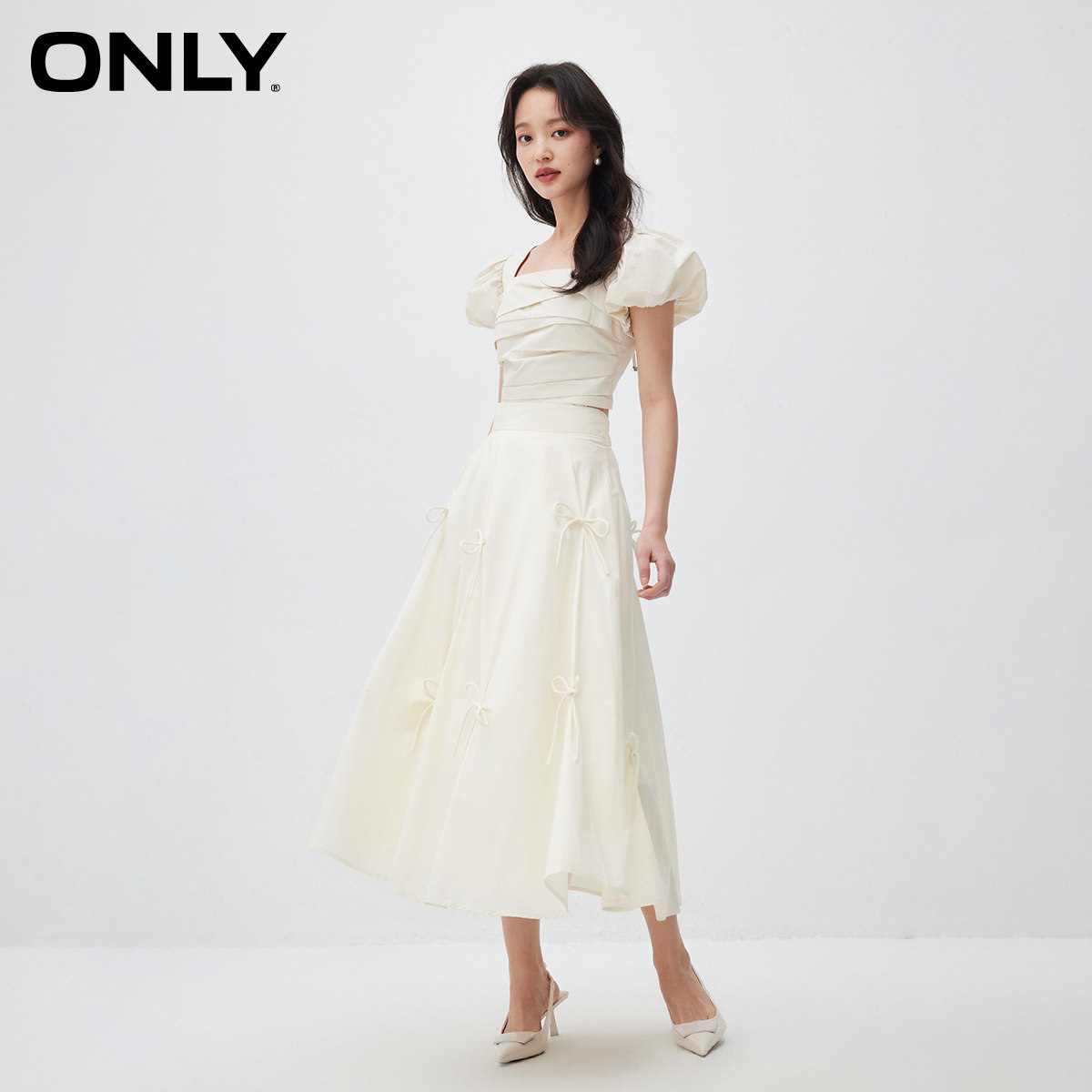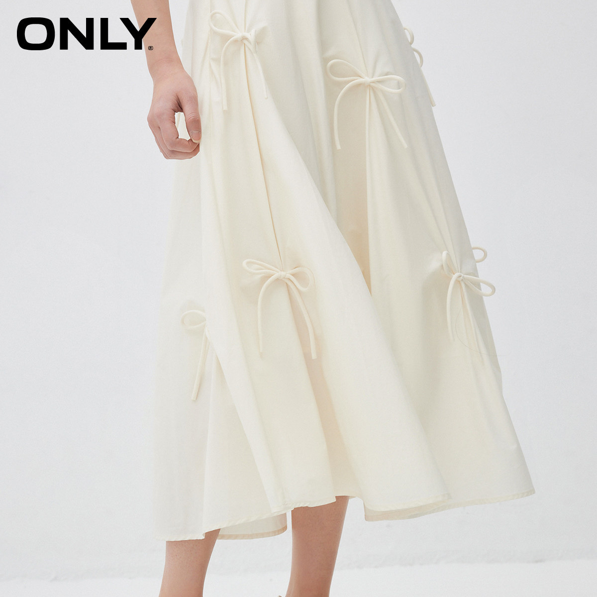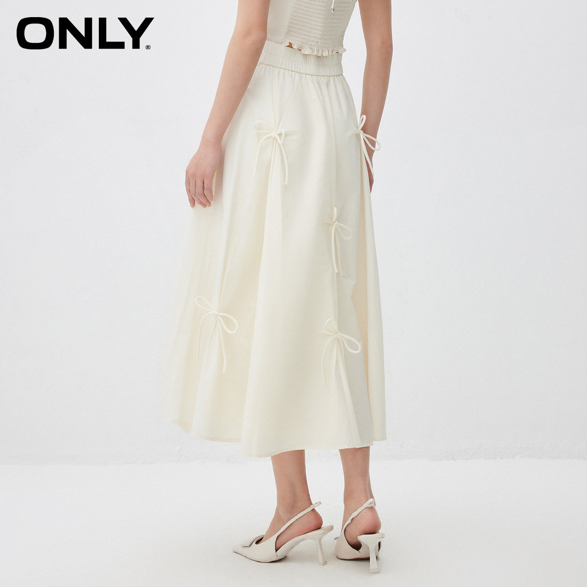【ONLY奥莱】春款仙女风时尚中长款高腰显瘦A字裙蝴蝶结半身裙女
