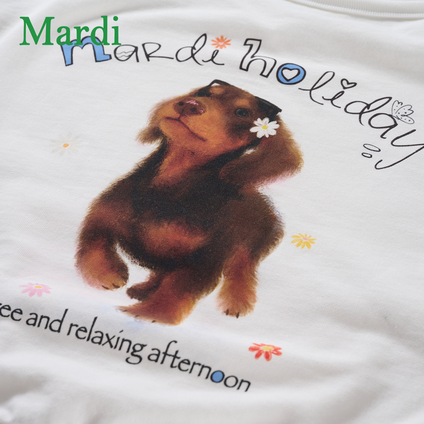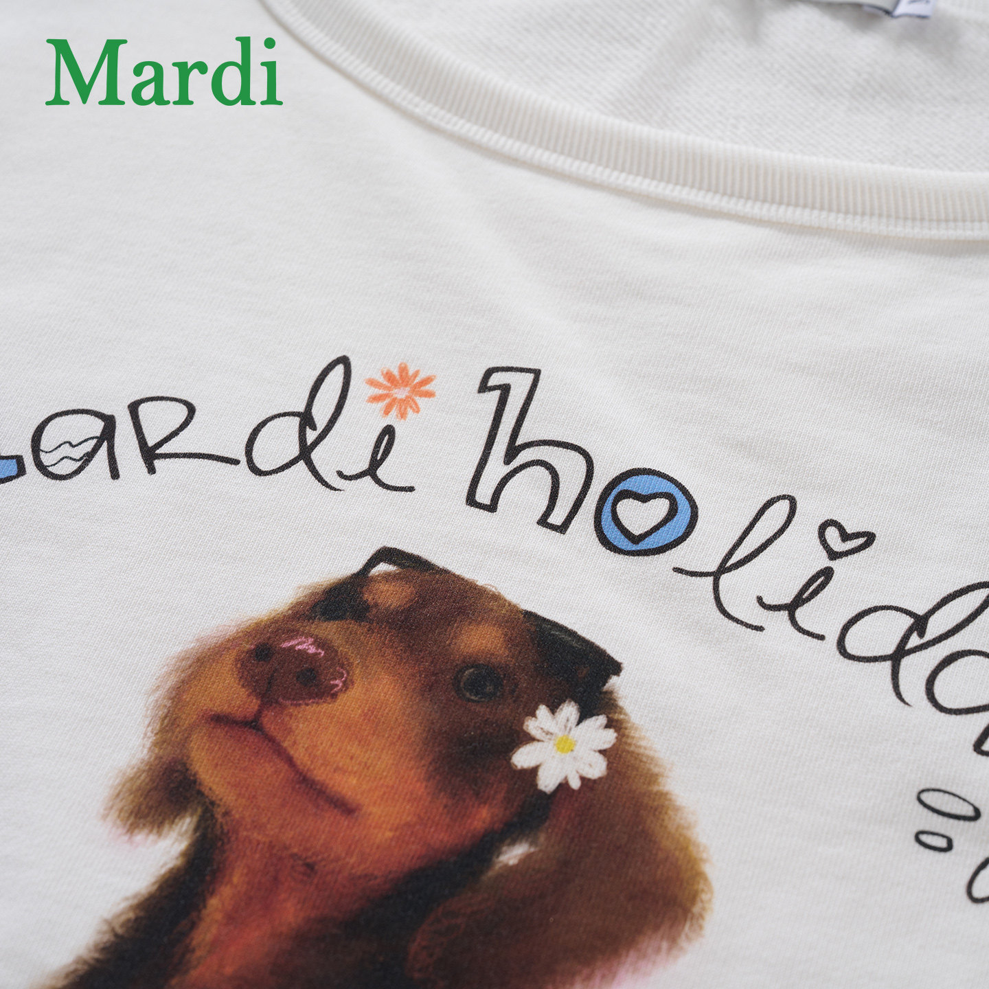 MARDI美式卡通小狗时尚斜肩卫衣女白色宽松百搭休闲上衣通勤风