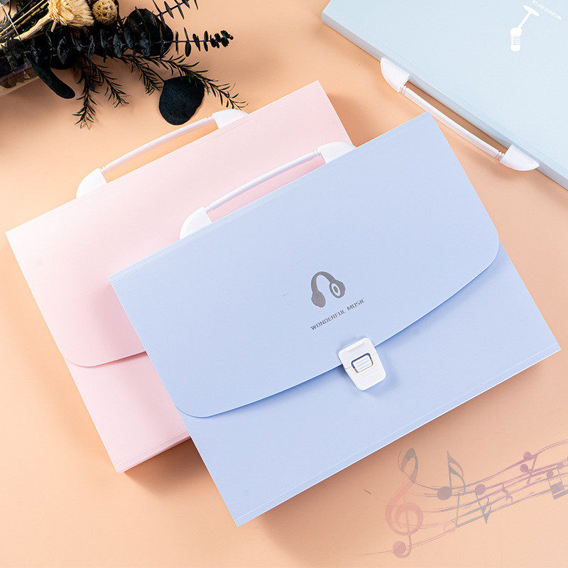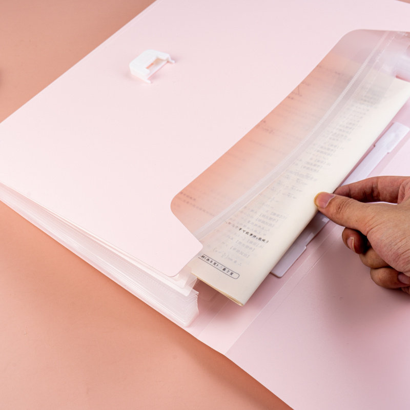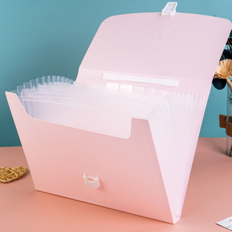 手提试卷收纳袋 大容量13层分类简易风琴包 a4学生蓝色风琴文件夹