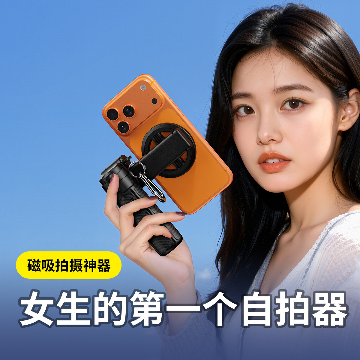 迷你自拍杆拍照神器MagSafe磁吸手机2025新款演唱会支架超小便携三脚架直播手持拍摄稳定蓝牙手柄助拍器专用