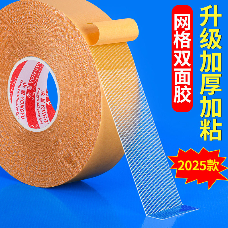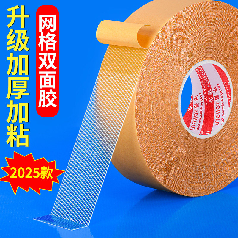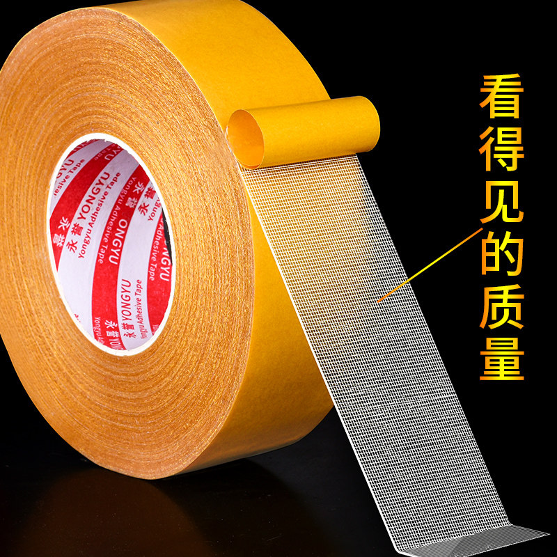 布基双面胶黄色透明地毯地板革拼接高粘度防水超粘不留痕墙面固定婚庆气球墙纸贴春联专用强力网格双面胶纸贴