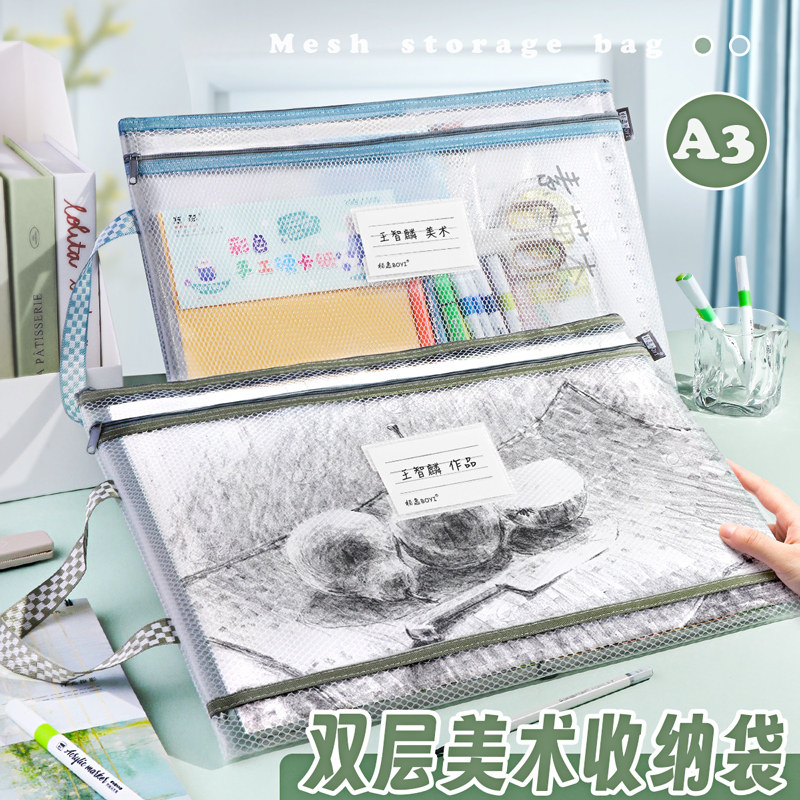 网格文件袋加厚透明网格拉链袋A4试卷收纳袋学生用考试文具袋防水笔袋办公用品批发公文档案袋资料袋包邮