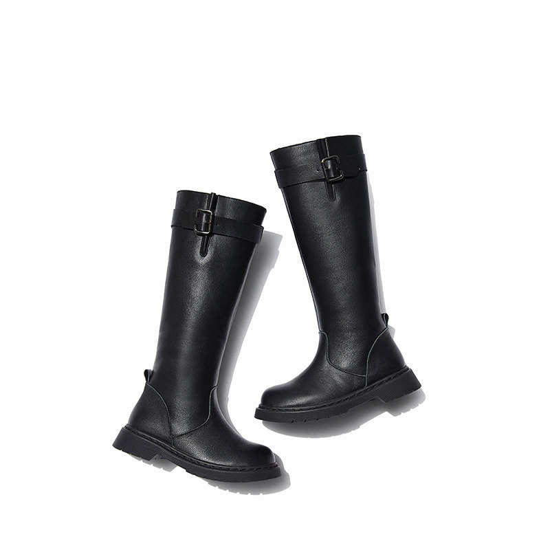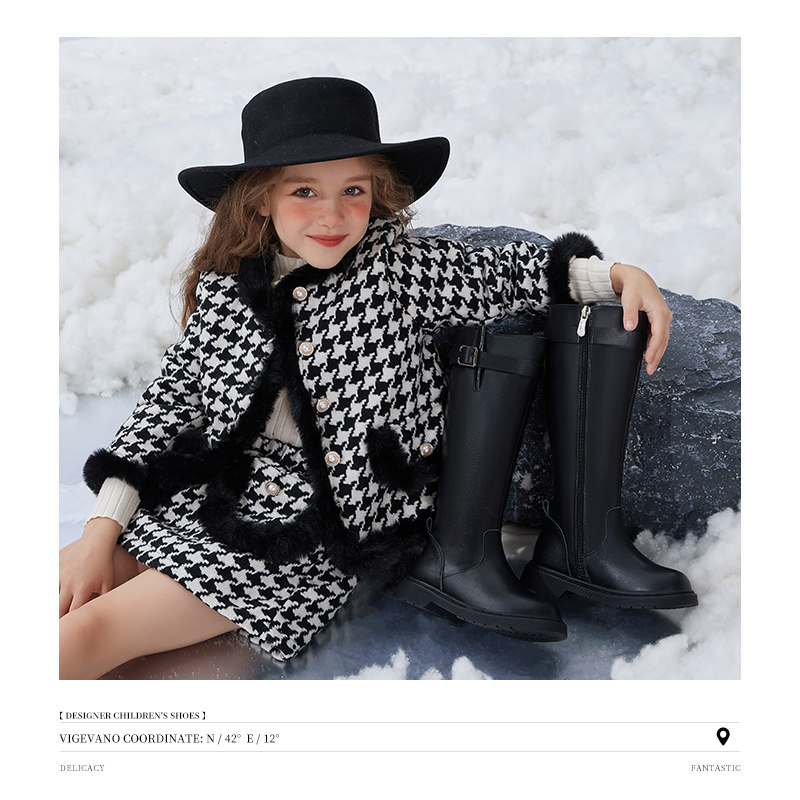 高定头层牛皮|斯纳菲女童皮靴真皮秋冬新款时尚百搭加绒长筒靴子