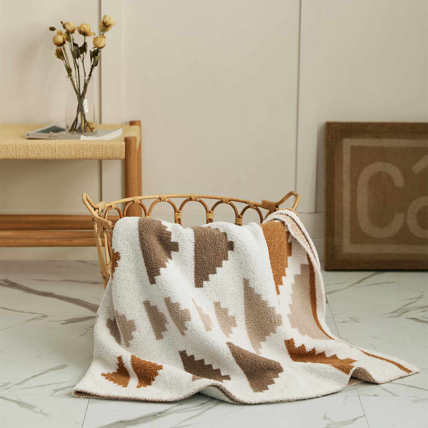 瑞景纺织毛毯 几何半边绒针织线毯软装搭配沙发毯黛倾心