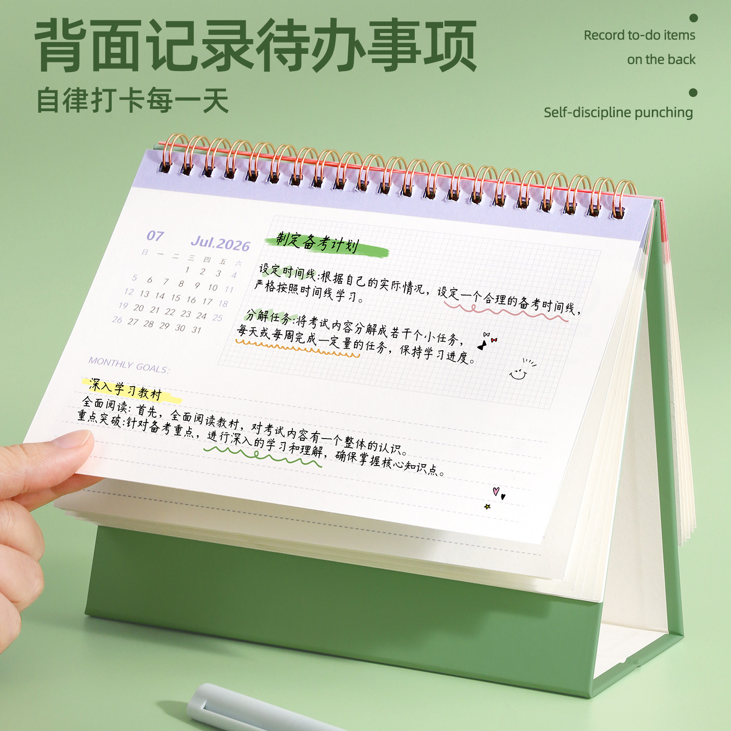 简约日历2026年学生备忘录中高考倒计时计划本月历ins风高颜值年历记事本创意办公室桌面摆件2025年台历定制