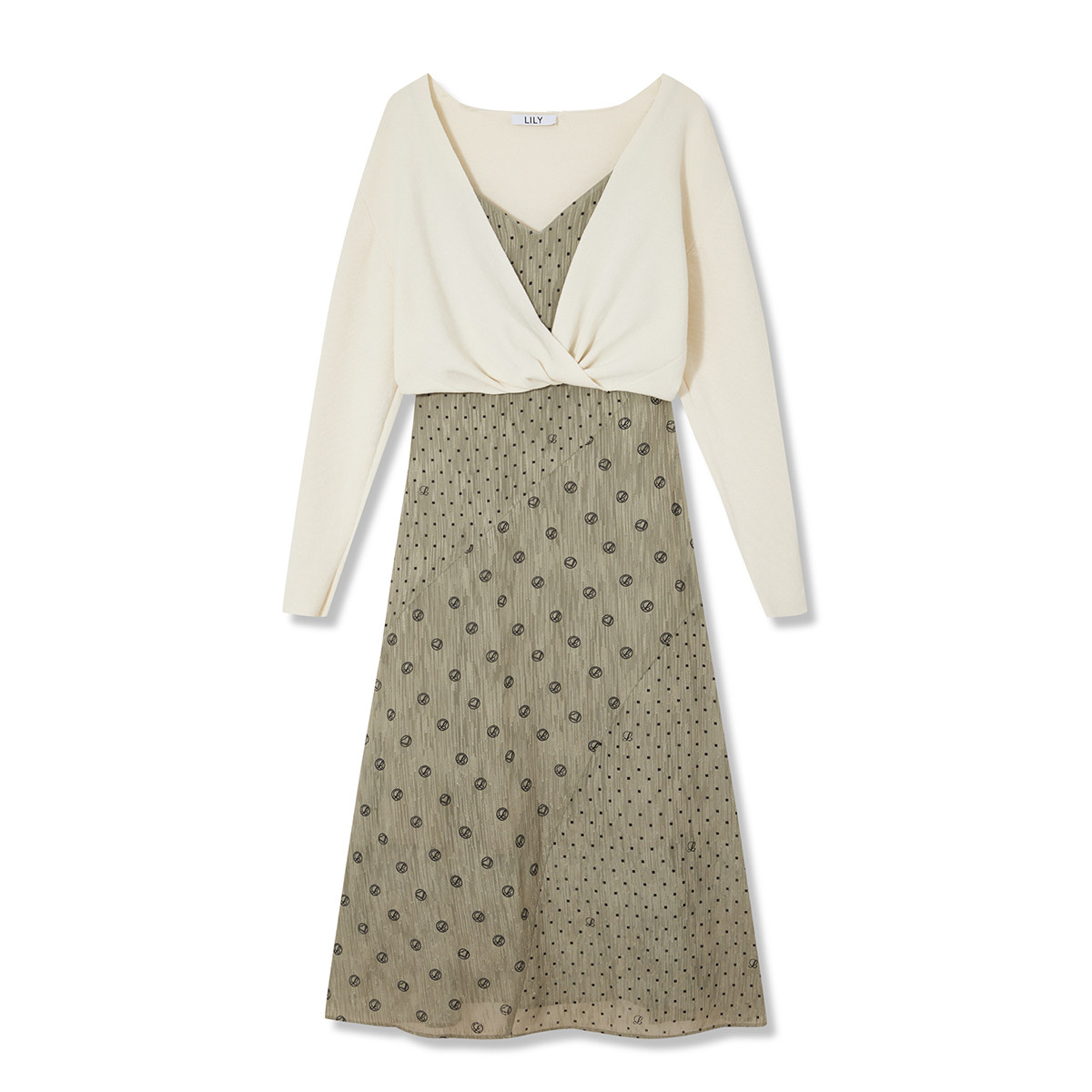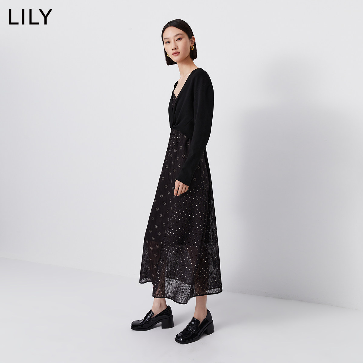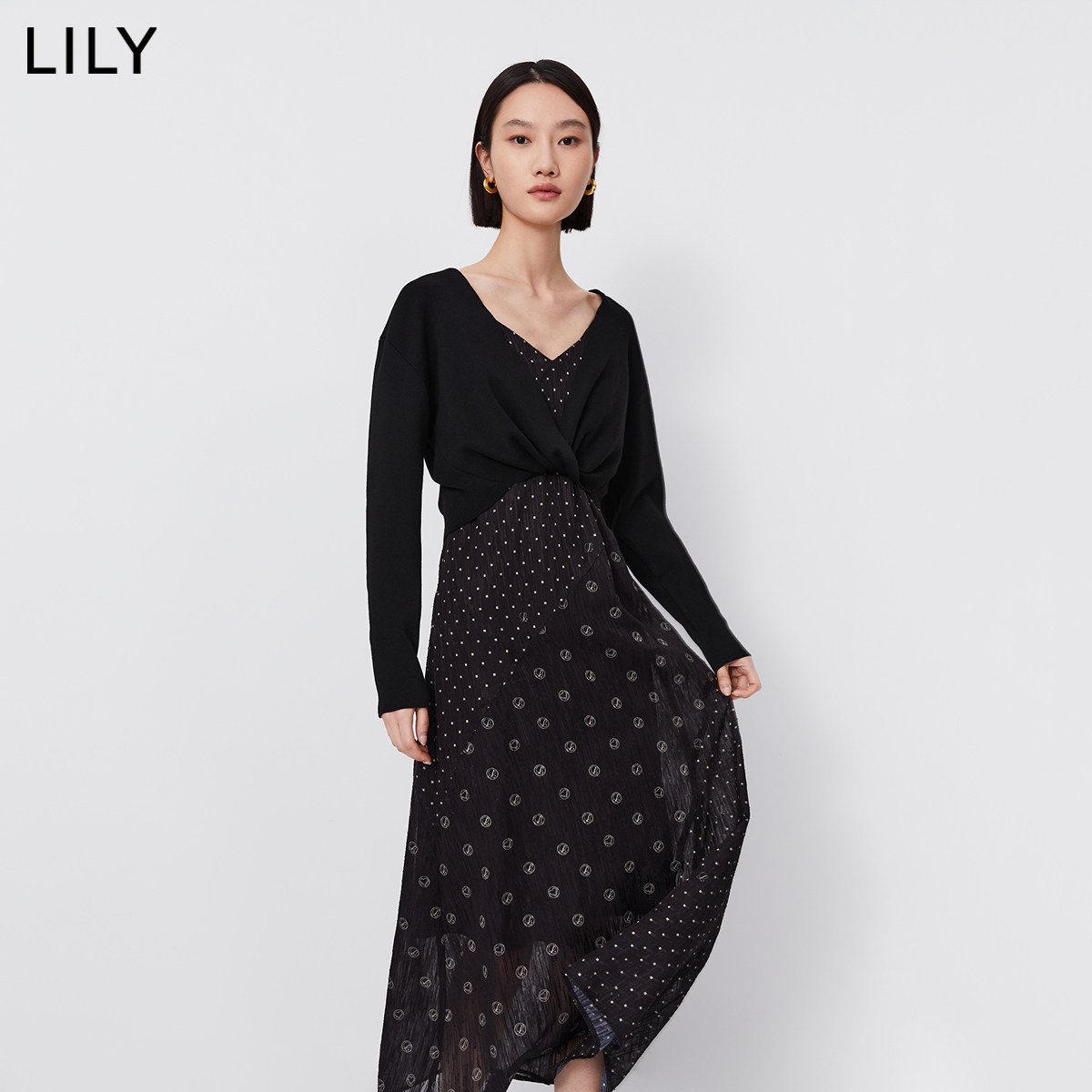 【商场同款】LILY新款女装设计感两件套扭结毛衫吊带连衣裙