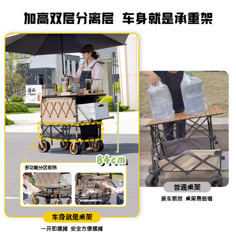 歌秀丹露营推车营地拖车户外折叠超大野营手拉车小推车野餐车桌板