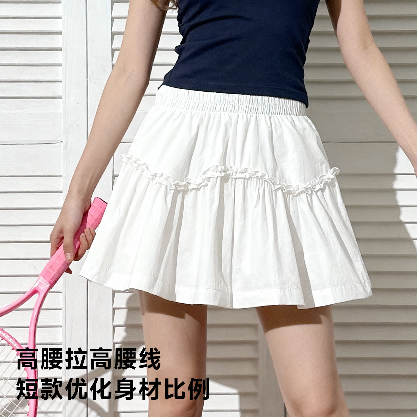 唐狮官方白色高腰花苞半身裙女夏季2026新款超好看蓬蓬蛋糕短裙VB