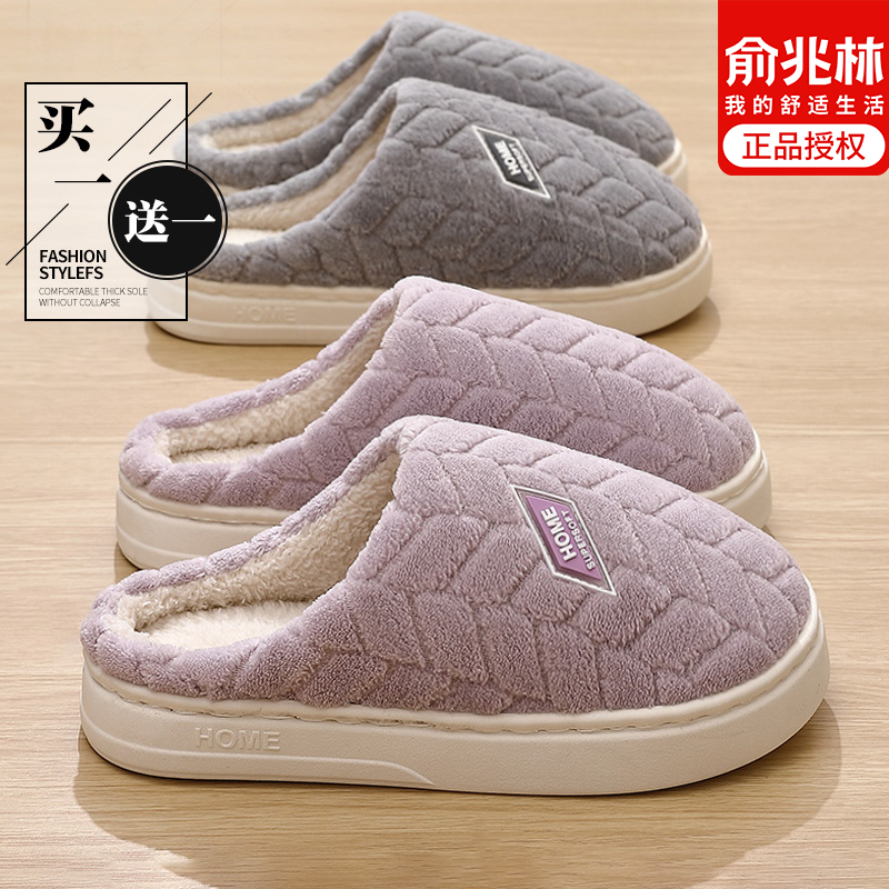 俞兆林买一送一棉拖鞋女冬季2025新款室内家居防滑情侣毛拖鞋男士