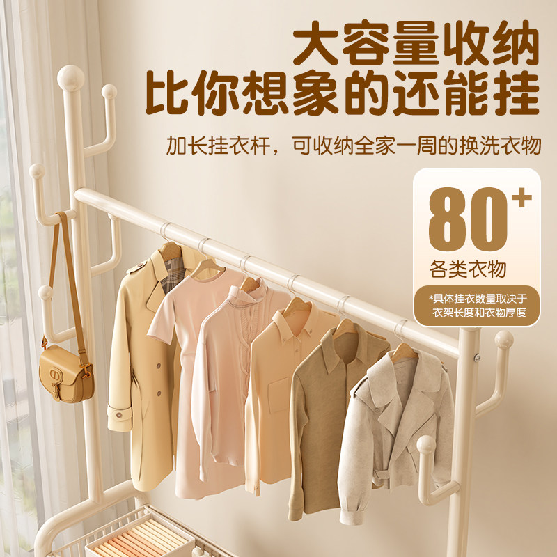 衣架落地卧室挂衣架家用室内移动晾衣架衣帽架客厅多功能置物双层