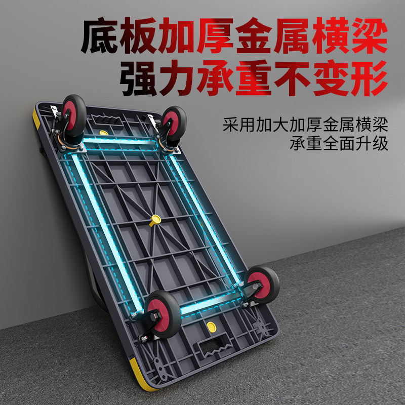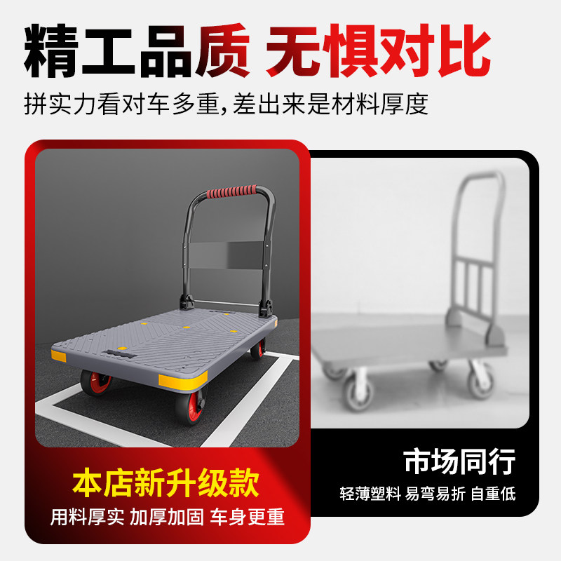 灰彩加厚小推车拉货搬运车四轮静音手推车可折叠平板车家用小拖车