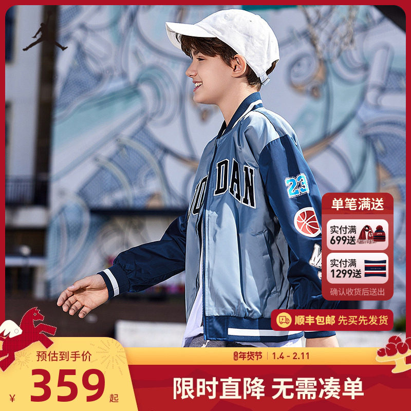 Jordan儿童装男童夹克春季新款大童篮球运动外套棒球服JD2412009