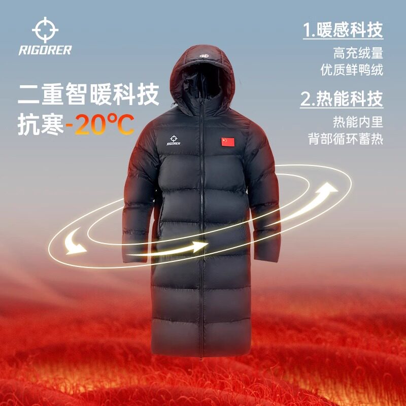 准者长款羽绒服国旗款男春季新品鸭绒保暖防风加厚运动训练外套女
