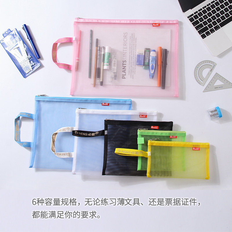 必能B4尼龙单层网纱透明文件袋B5A5学生笔袋A4考试文件袋档案袋