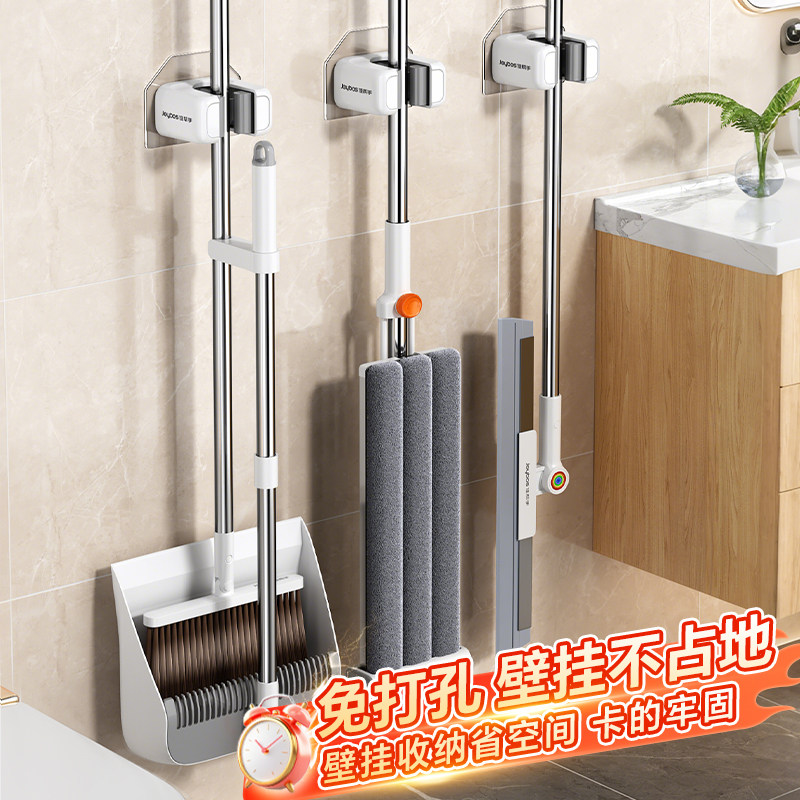 佳帮手拖把壁挂夹免打孔家用扫把拖布收纳神器卫生间厨房浴室挂钩