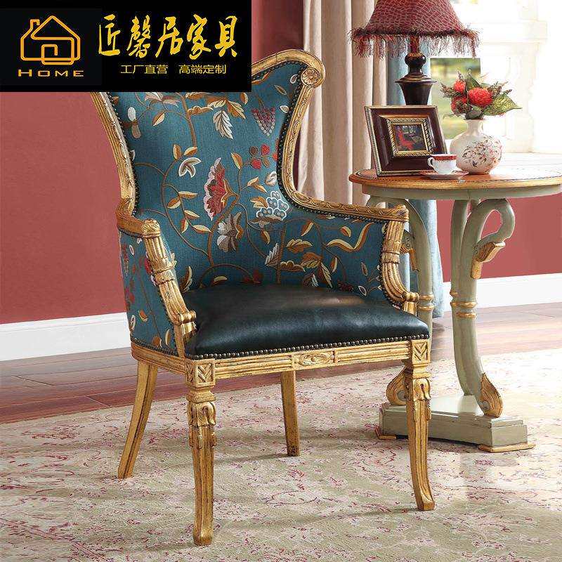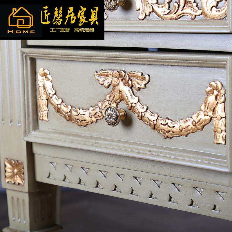 法式桦木雕刻书桌书柜书椅组合别墅复古书房写字台椅组合家具