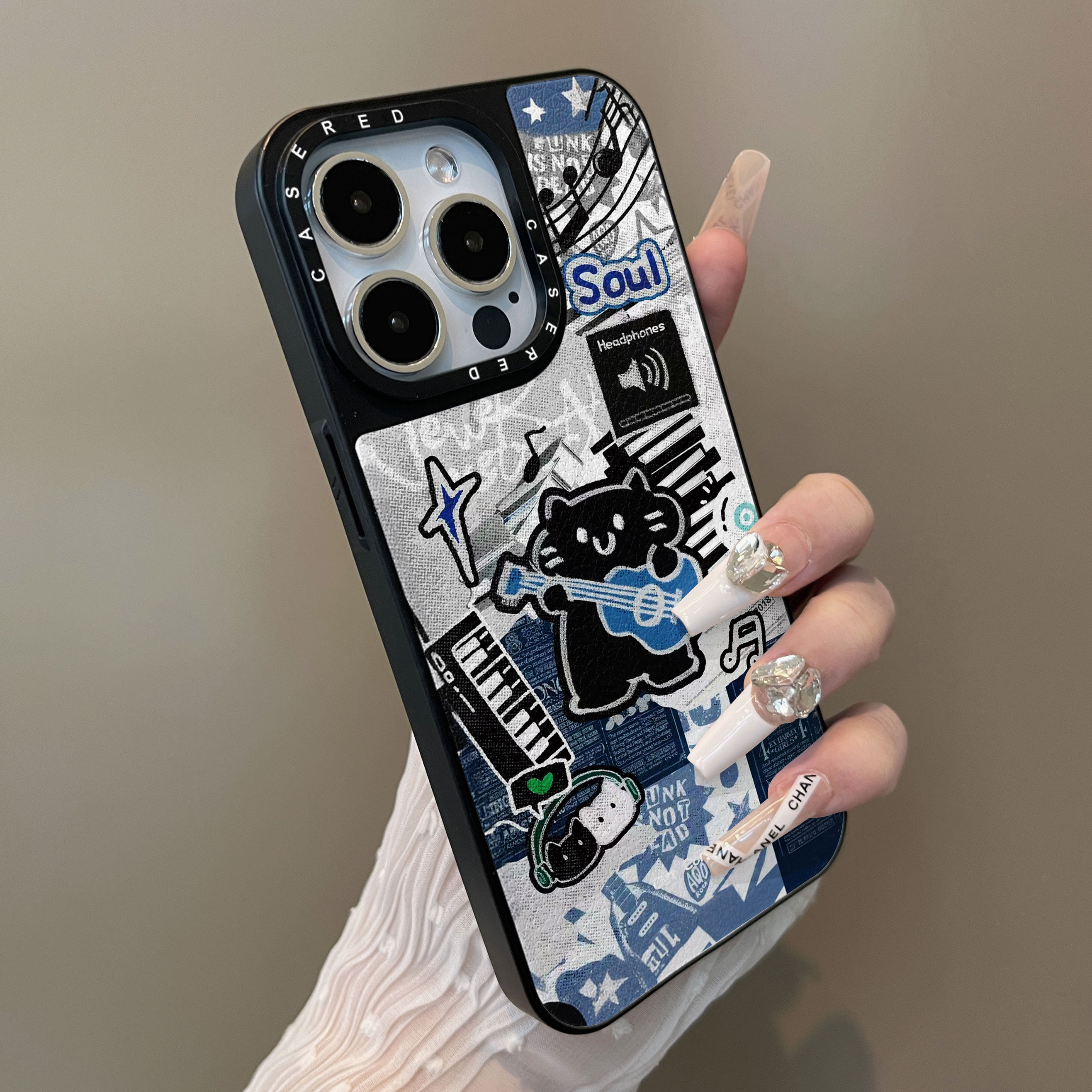 适用于华为pura80pro+手机壳吉他黑猫p80plus十刀锋小羊皮支架p60简约p40新款p50e套防摔男女生p70ultra