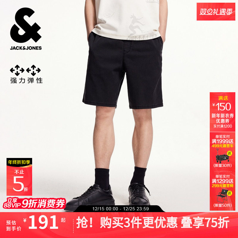 杰克琼斯男装秋季舒适弹力百搭潮流个性休闲酷帅简约基础纯色短裤