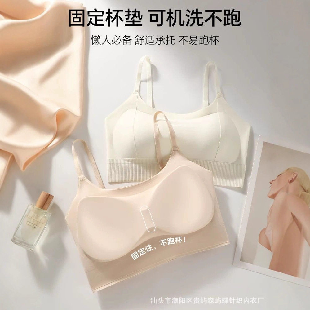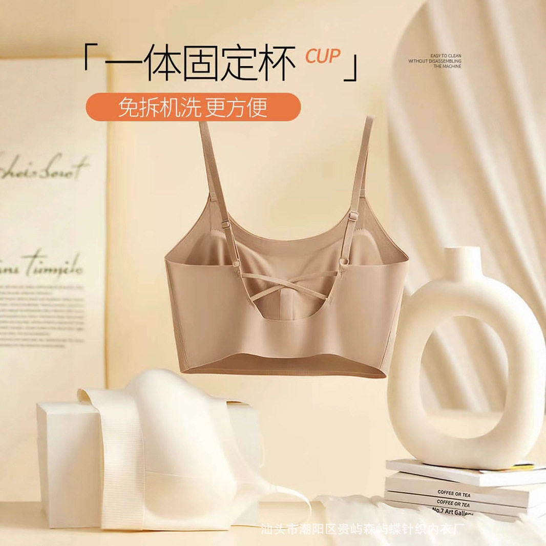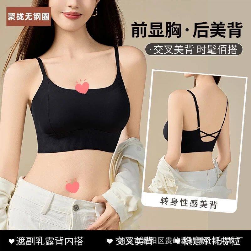 小胸加厚美背内衣女聚拢显大防走光细肩带吊带背心一体式文胸抹胸