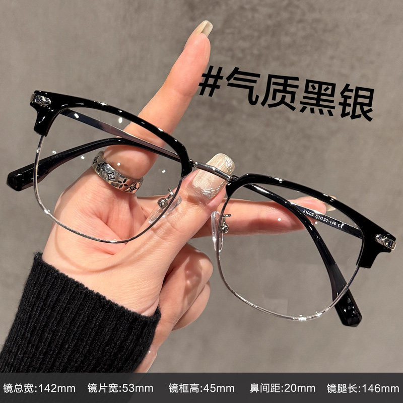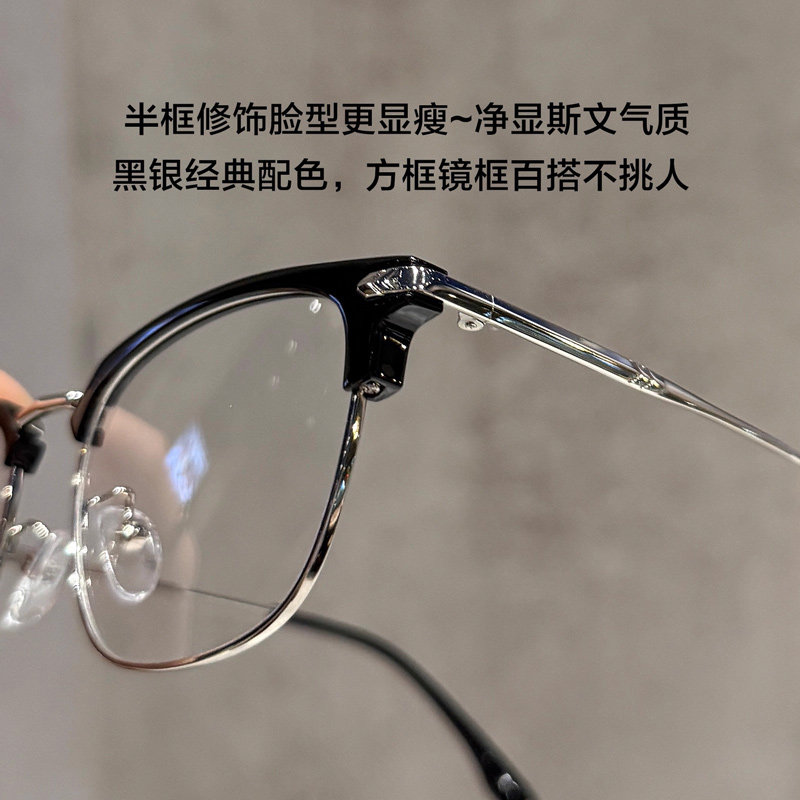 超轻痞帅眉线眼镜黑色半框近视可配度数男款斯文理工男眼睛框架女