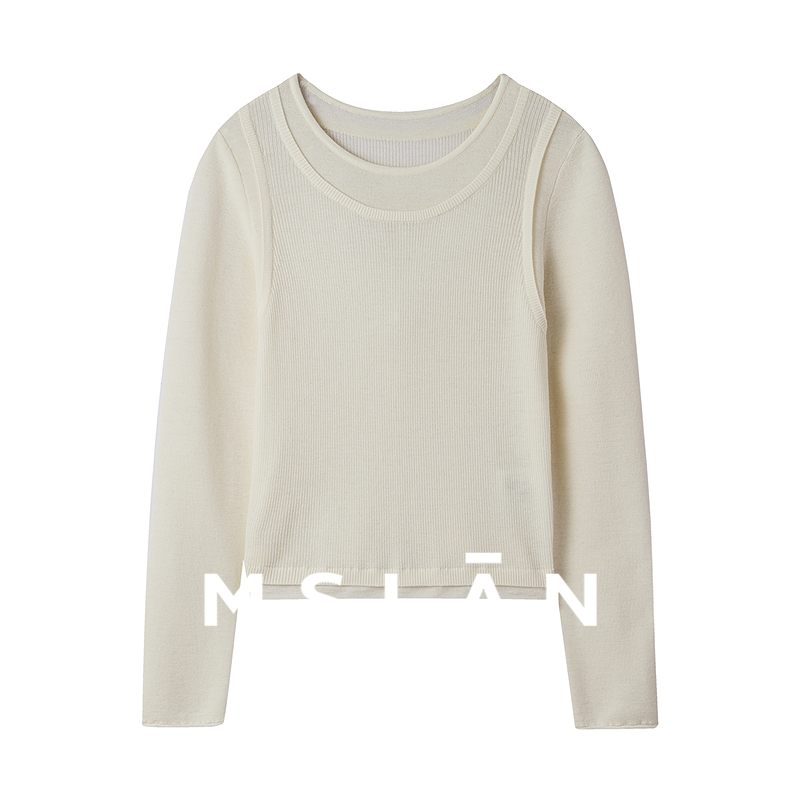 「浅春系」MSLAN假两件云柔感绵羊毛套衫薄款紫色马甲针织衫26春