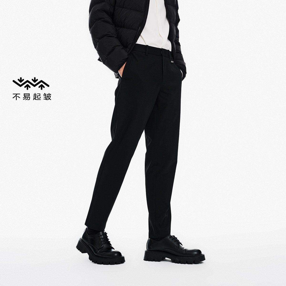 杰克琼斯男装裤子春秋抗皱打理商务休闲裤直筒垂感黑色男裤