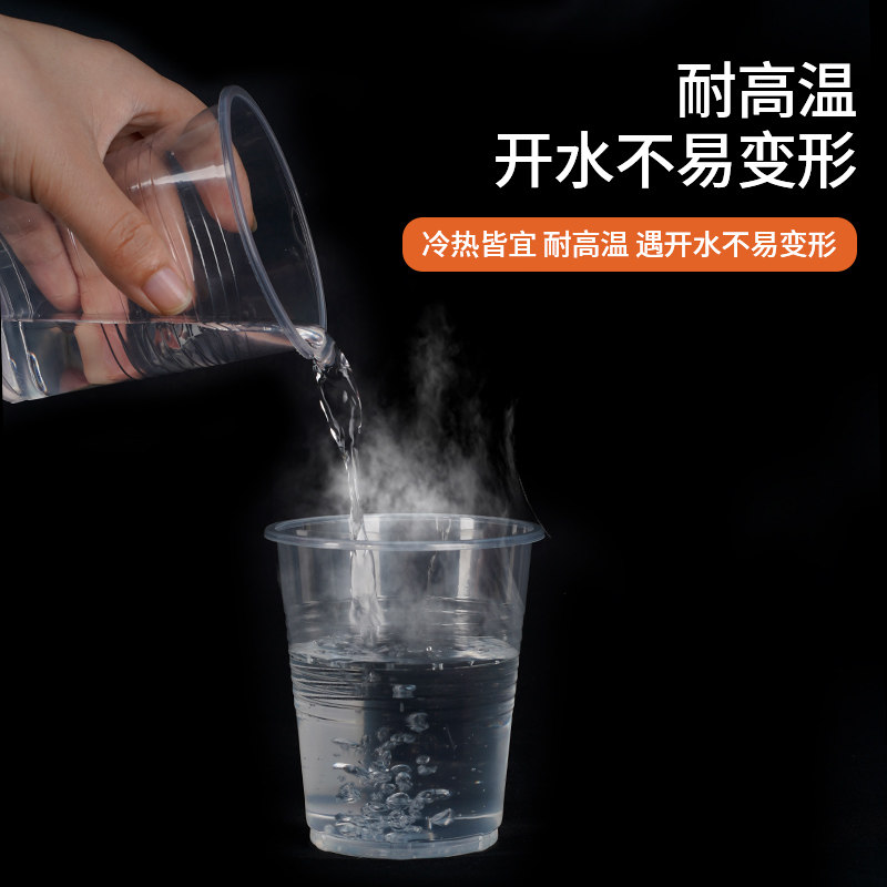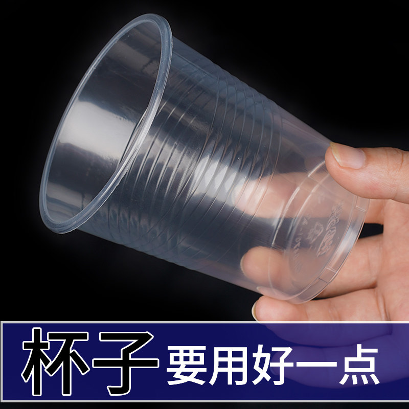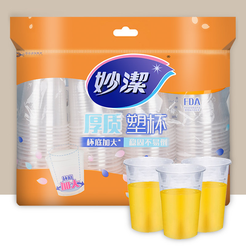 妙洁一次性塑料杯子家用中大号航空杯透明水杯食品级加厚办公商用