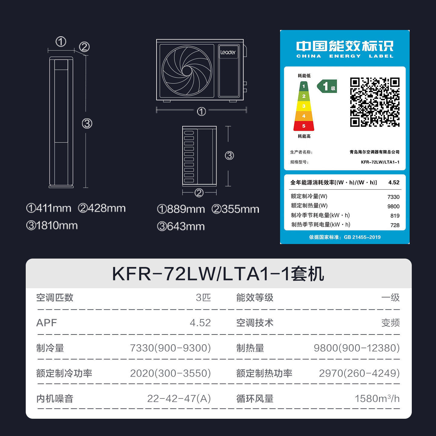 海尔出品空调套装新一级3匹柜机家用客厅两三室一厅挂机卧室1.5匹